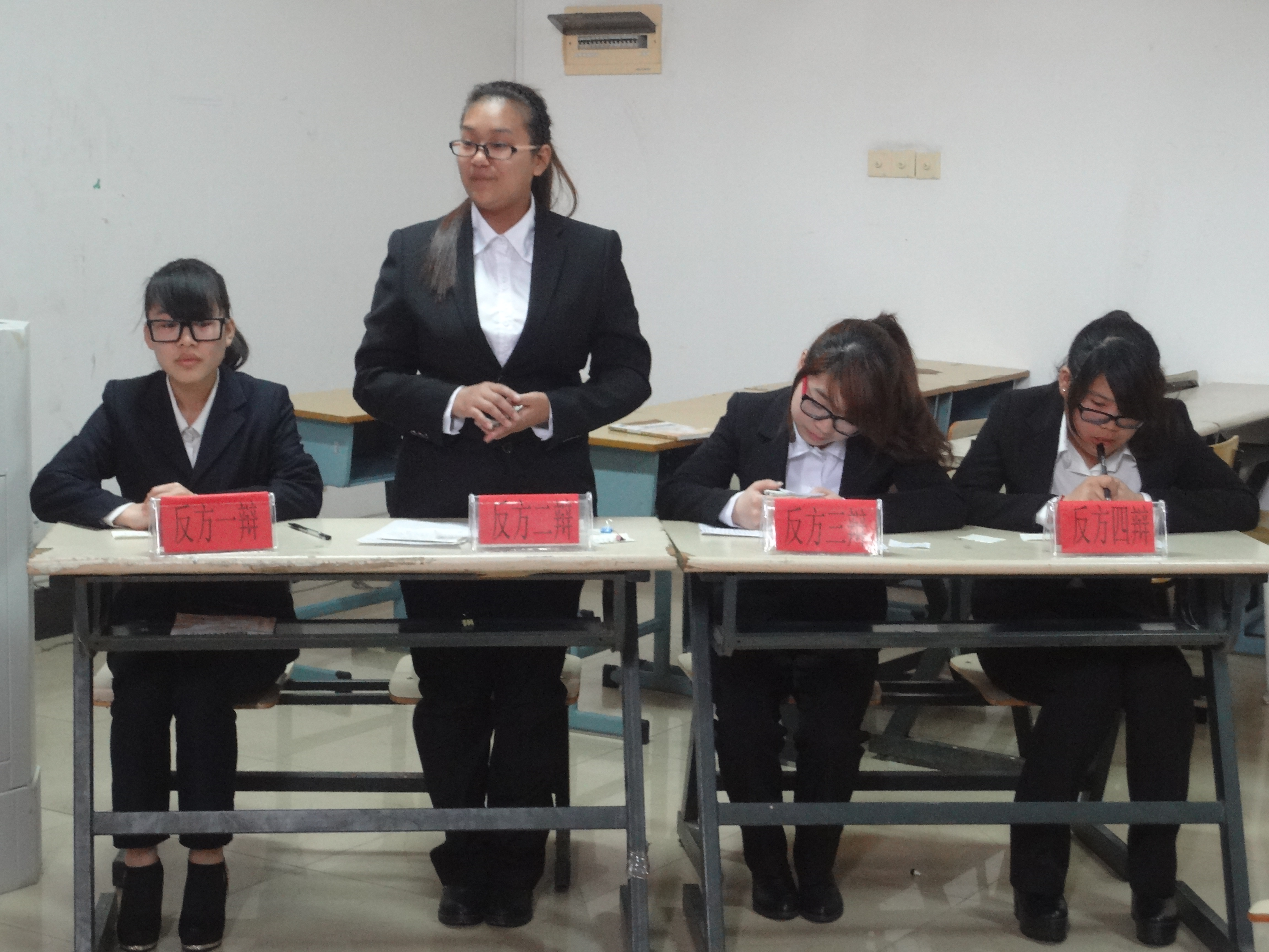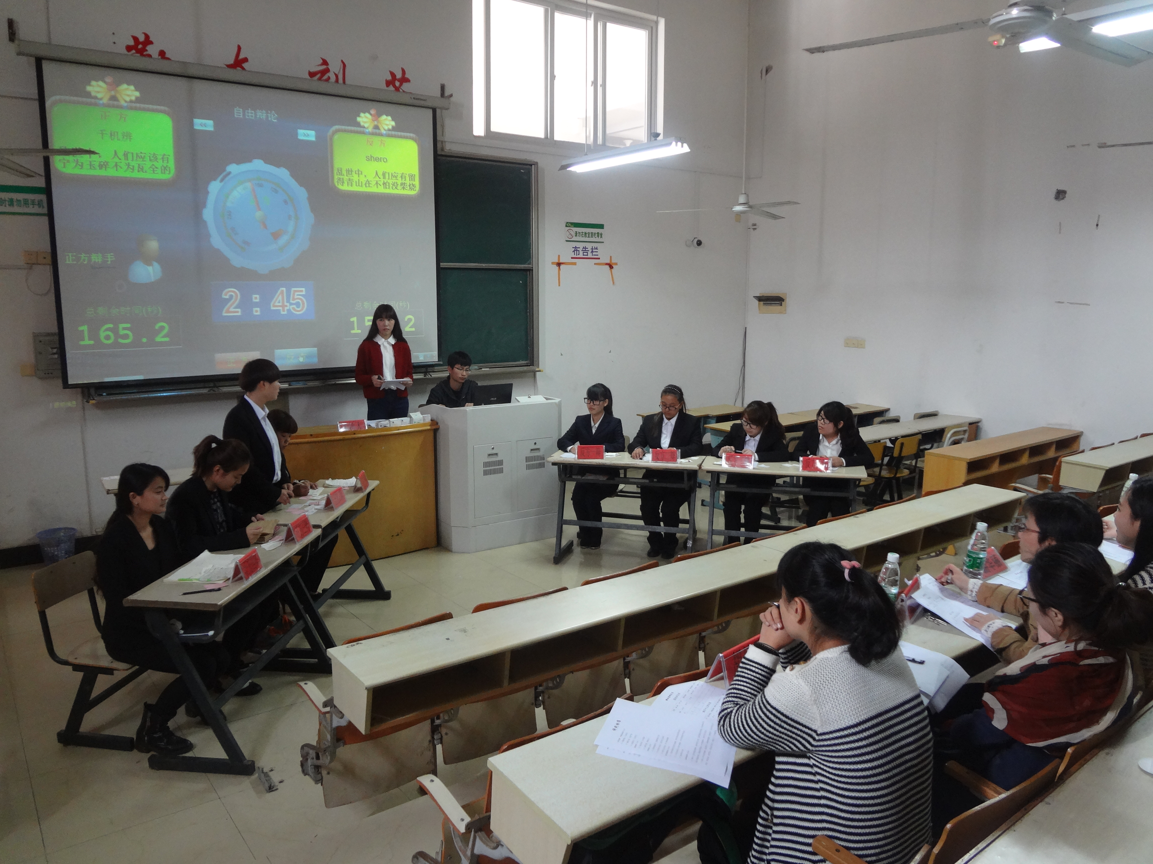 提高同学们的团队协作能力,活跃学院文化,增强同学们的思辨能力与创新能力,并让更多同学更了解“辩论”和“口才”的重要性,提高自身的口才能力,工商管理系迎来了“挑战杯”辩论赛的决赛。3月27日午12:30明德楼303教室我们迎来了院人文社科部周碧蓉老师,工商管理系分团委书记游华丽老师,团委老师林珊帅担任比赛的评委。此次正方千机辩认为是应该有宁为玉碎不为瓦全的精神,反方shero则认为是留得青山在不怕没柴烧的思想。双方所持观点之迥异,注定要在此上演一场激烈的对决。