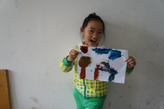 在手工课上,在志愿者的指导下,有的小朋友在折纸;有的小朋友用橡皮泥做成了各式各样的动物,如章鱼、蜗牛等;有的小朋友用吸管在纸上吹颜料,吹出各种图案;有的小朋友用蜡笔在白纸上画出自己的小灵感。