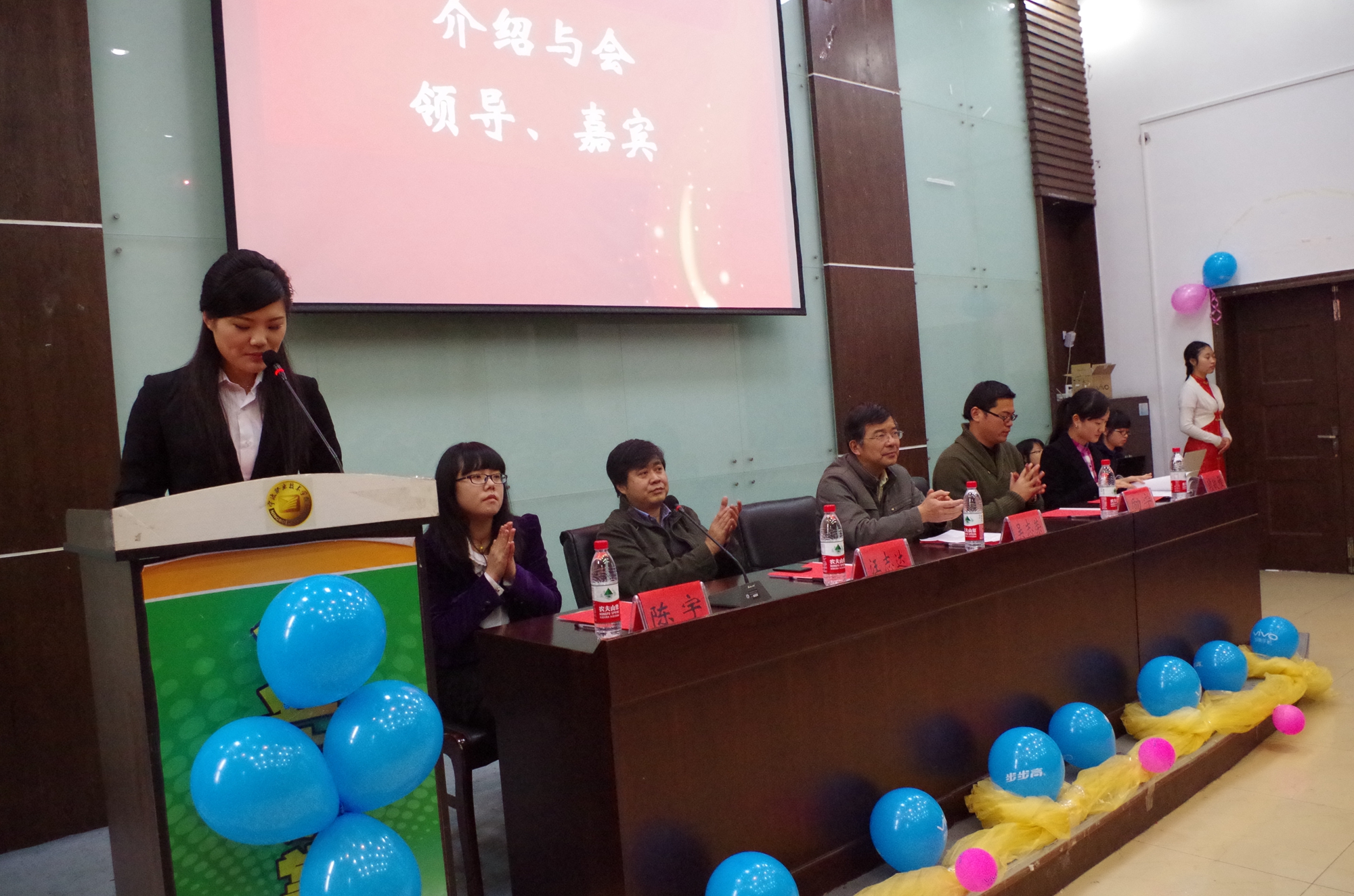 图为:会议主持人正在介绍在座嘉宾