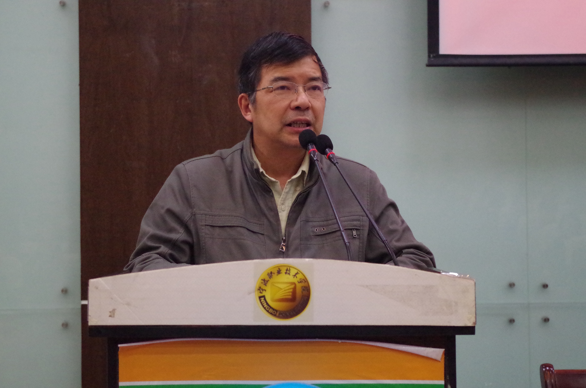 图为:我系系主任吴志荣正在发表讲话