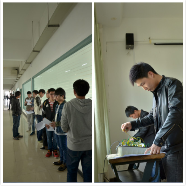本次应聘会筛选严格,对同学们的动手能力,理论笔试以及现场面试表现综合评比筛选。不同专业的同学被分到了不同考场,设备、电气的同学细心地在电路板上连接线路通顺,展示平时学习的成果;机电、模具专业的同学正争分夺秒地完成钉板钉钉、蒙眼拧螺的动手测试,在分秒间比拼心理素质与动手能力。