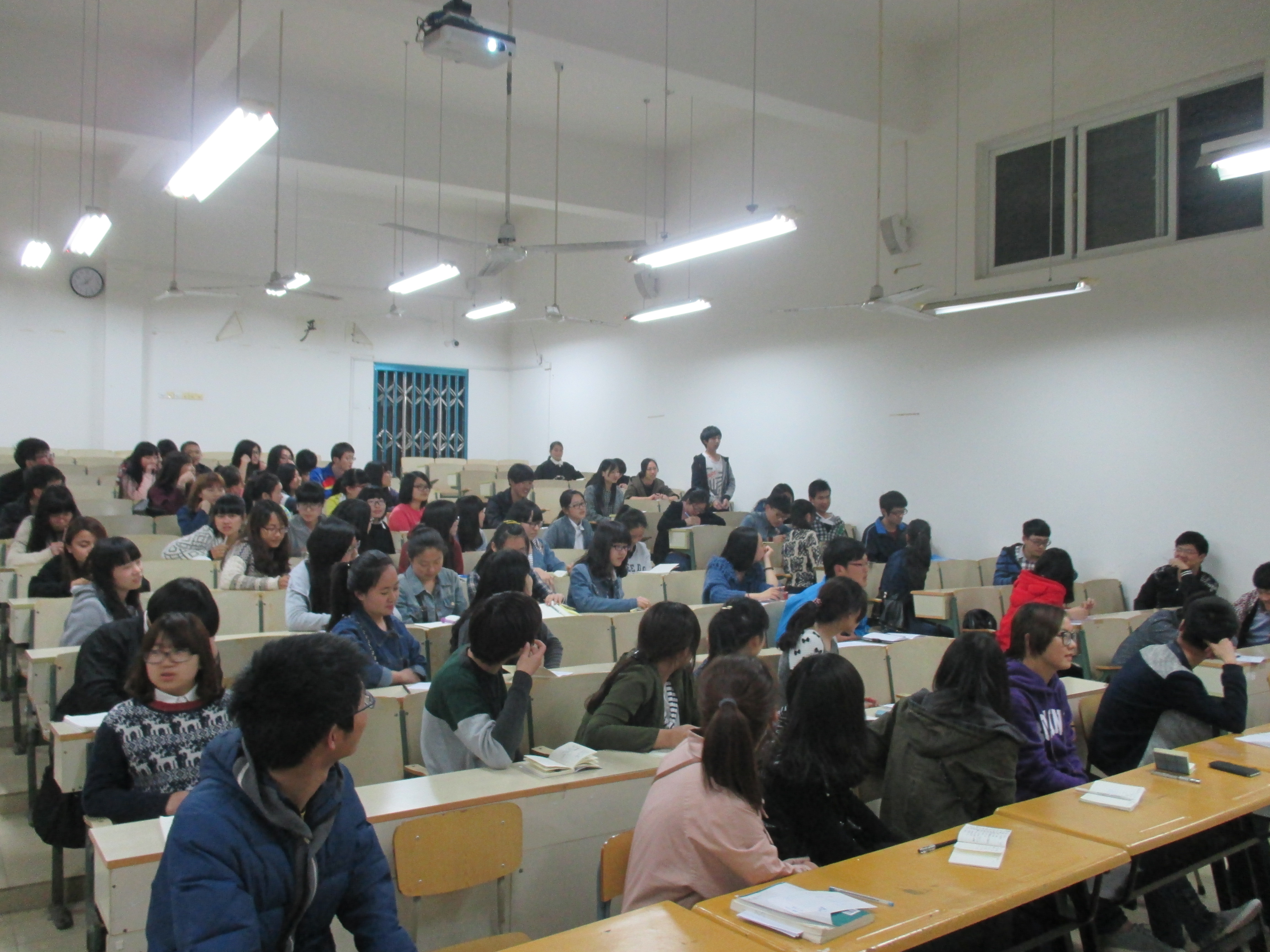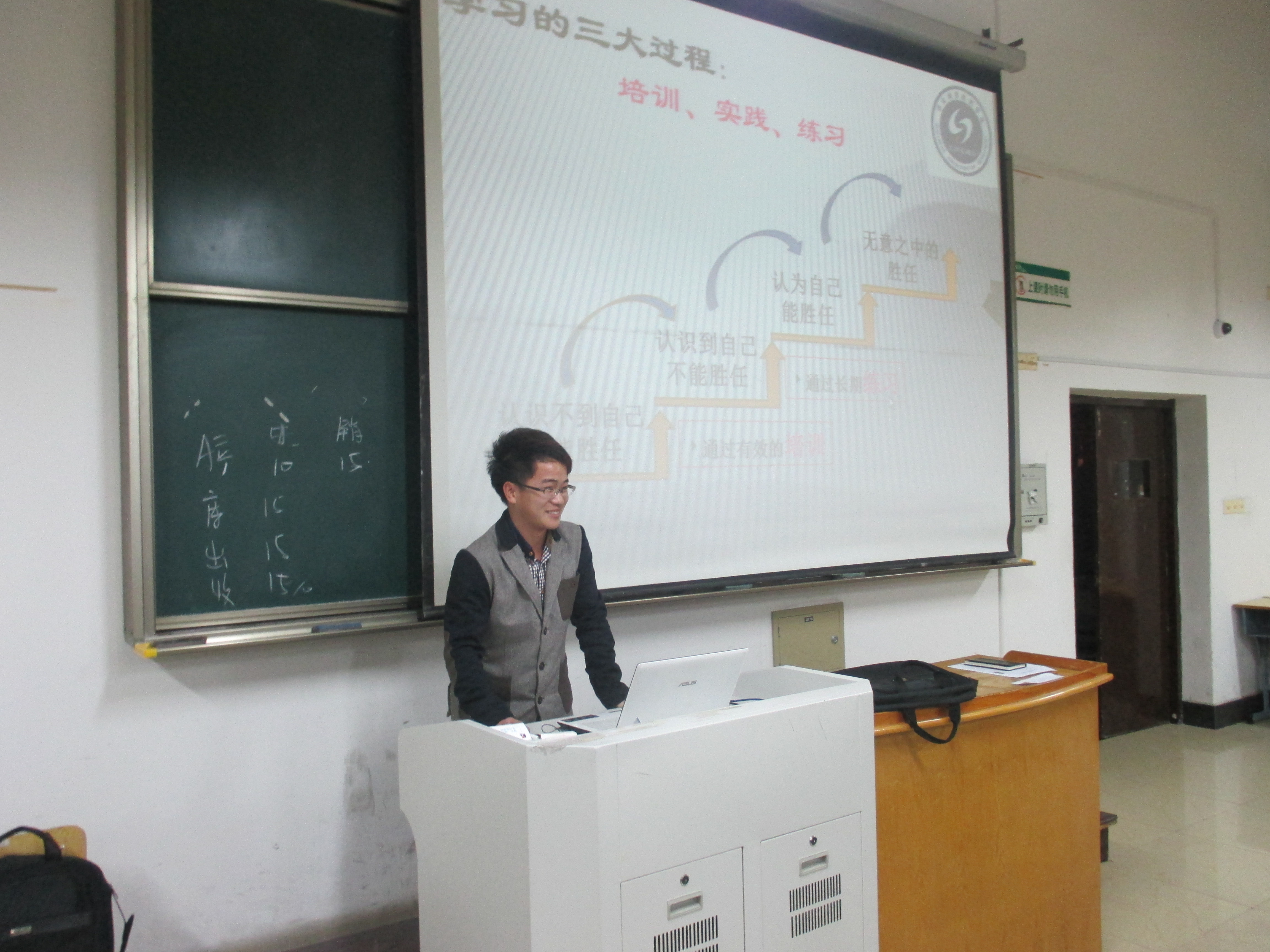 应该如何做好一个学生干部呢?学长学姐的长与短,学习与改正。2014年4月10日晚8点,工商管理系团学培训第五次讲课在明德楼307教室进行,此次讲课的分别是纪检部部长马章晨和生活部部长叶强君。纪检部部长马章晨以一个简单的游戏,但又是绝对具有挑战的游戏拉开此次团学培训的帷幕。拍七令:所有人需要共同完成一件任务——数数。数数的规则是每人按照顺序一个人数一个数,遇到数字末尾是3或3的倍数时,就以拍掌示意。 数错的人就要进行自我介绍及为何参加团学培训的动机和对部门部长的优点与缺点。拍七令游戏极大地调动了干事兴趣,整个课堂在一阵阵笑声和欢呼声中结束。