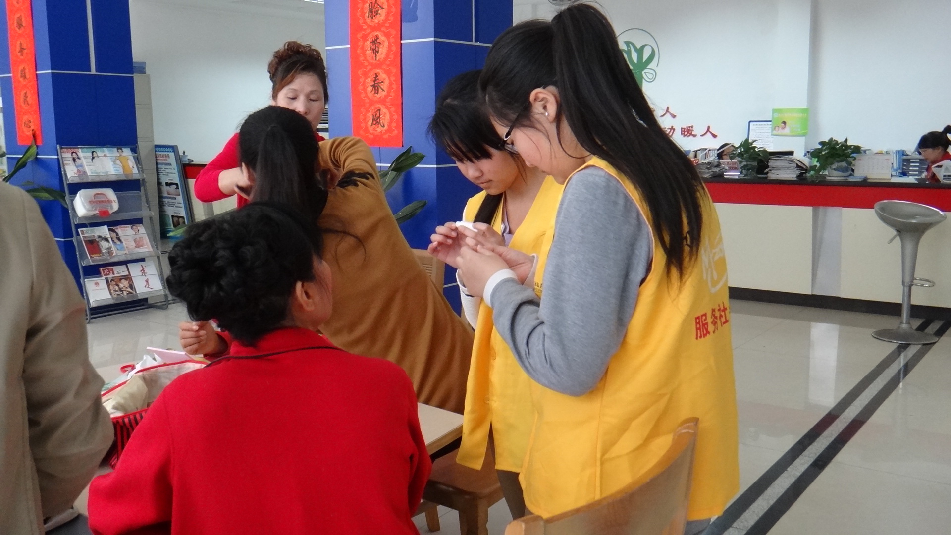 2014年4月11日,为体现我系志愿者活动创新精神,锻炼学生社会实践与动手能力。电子信息工程系志愿者部开展为黄鹂社区老人化妆活动。
