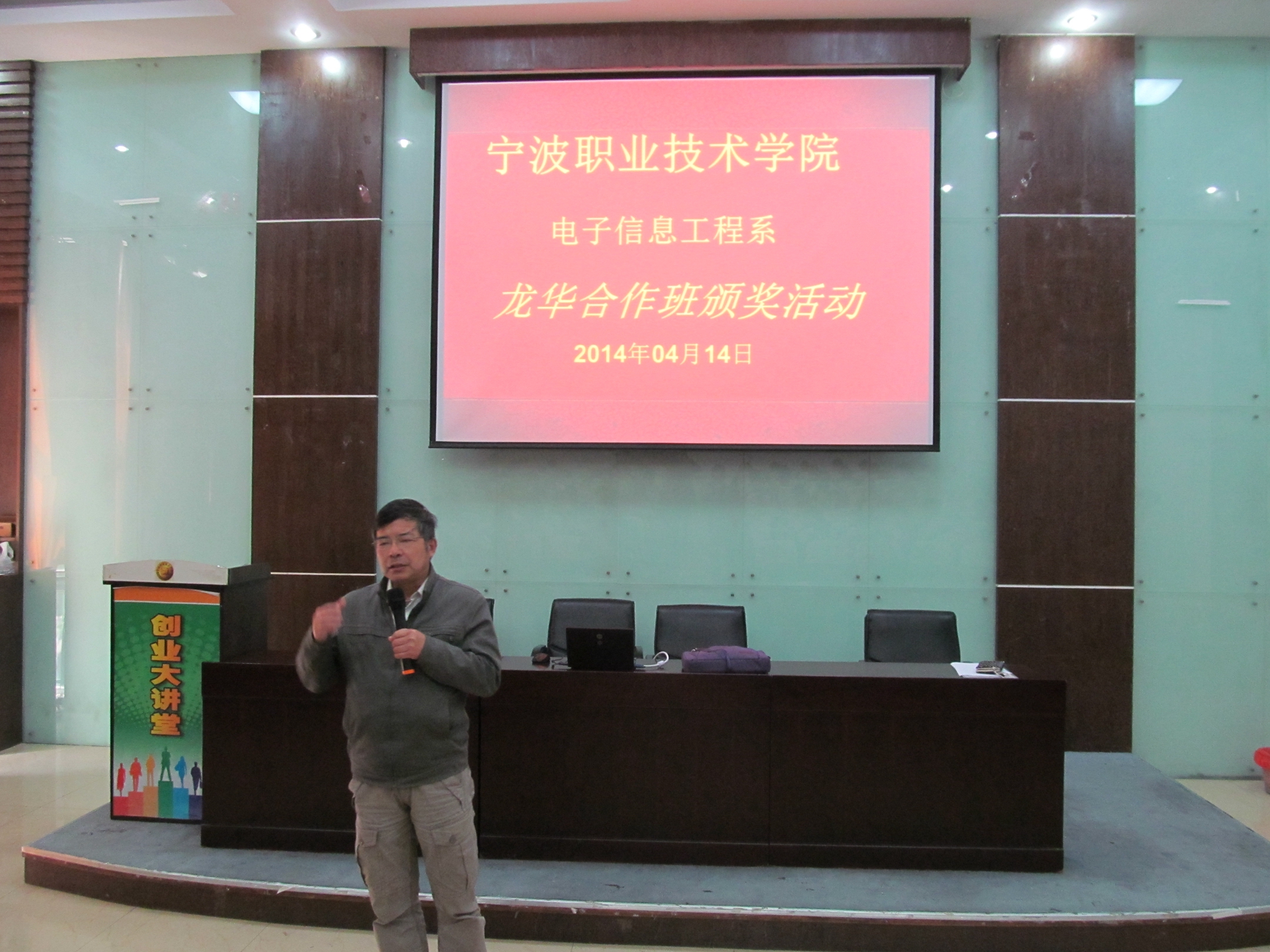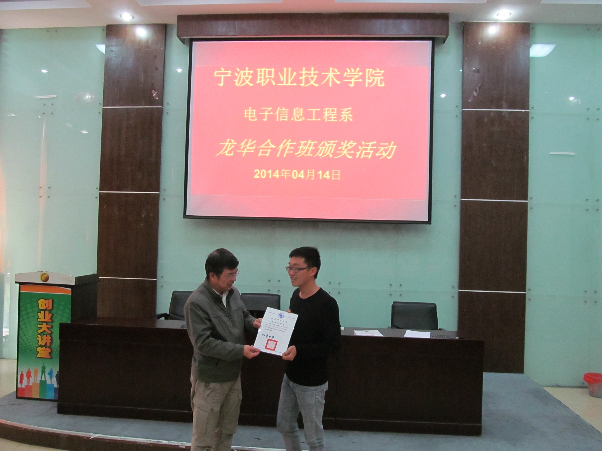 4月14日中午12点30分,电子信息工程系于明德楼105教室,召开了“龙华合作班学生奖学金颁奖典礼”,并邀请了我系系主任吴志荣教授作为颁奖嘉宾。