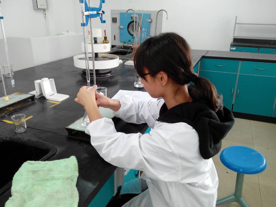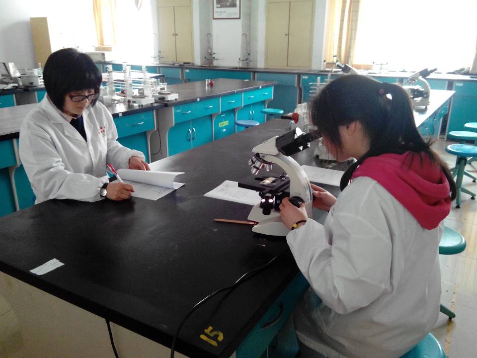 此次竞赛共分为两部分,第一部分是氢氧化钠溶液的滴定,第二部分则是显微镜的使用。同学们为了能在技能竞赛中取得较好的成绩,他们利用平时的课余时间苦练技能,已经熟悉的掌握了各类实验仪器的操作。比赛过程中,同学们认真阅读了技能比赛的试题,然后熟练的称量所需药品,把药品进行溶解、定容。评委老师根据他们实验的规范度进行打分。比赛对每位选手的操作要求都要比平时上课要求严格,这对选手们是一次极大的考验。将近一小时,选手们仔细认真、有条不紊完成了第一部分滴定的测定。