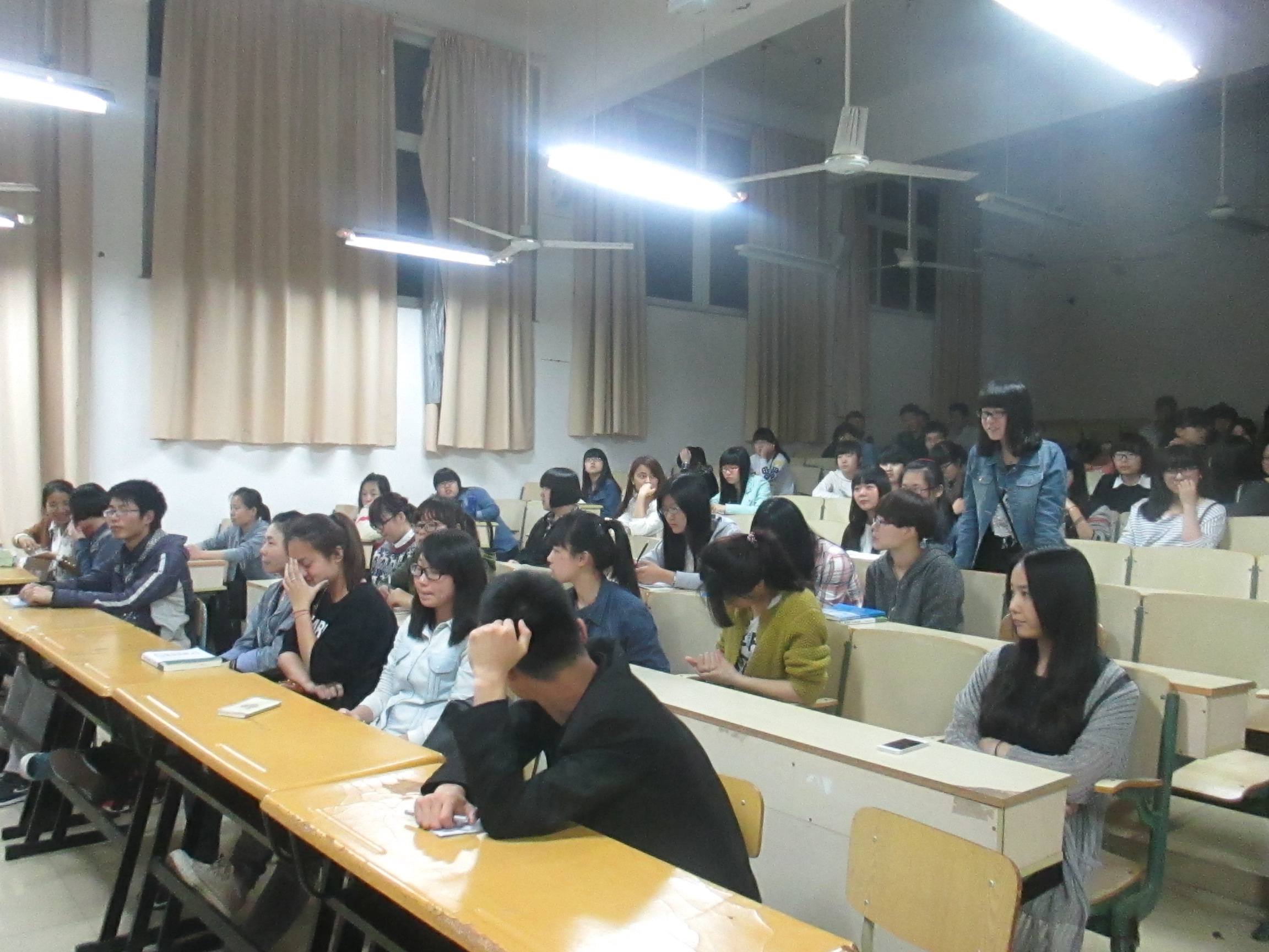 图为:同学们认真听课 信息部部长朱银婷则是以一个“你是否是个富有责任心的人”的测试展开了她的话题。她表示:同学们要做个对自己负责,对家庭负责,对集体负责,对社会负责,对他人负责的人。她结合自身经历给同学们传达了责任的重要性,只有对他人也给予温暖和关心的人,才能对自己负责,将各方面的实事完成到最好。天下兴亡,匹夫有责--顾炎武的这句话也提醒着同学们应持着这种处事态度来面对各种事情。一周一次的团学培训课程,不仅使同学们更亲近,也让学生会的各部门更加密不可分,在无形之间搭起了同学们之间奇妙的连线。工商管理系团委学生会已然向着无惧各种风雨的团队而演变。