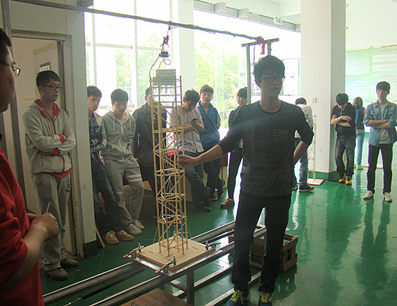 为了培养建筑工程系学生的创新思维和实际动手能力,增强学生工程结构设计与实践的能力。建筑工程系结构模型大赛决赛于2014年4月17日中午在东校区有为楼拉开了帷幕。据悉,此次竞赛邀请来担任评委的有建筑工程系主任车金如老师,建筑工程系党总支书记丁立人老师,建筑工程系系副主任黄丽莉老师,以及建筑工程技术专业教师力学专业老师于兰珍老师,俞静老师,吴荣兴老师等。