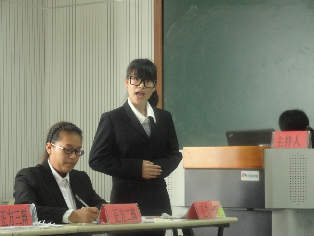 继短暂而精彩的观众提问环节后,比赛进入总结陈词环节。正反双方辩手清晰的思路和巧妙的陈词给观众留下了深刻印象。接着,刘桂萍老师对本次辩论赛做了精彩的点评,她指出了双方的优点和不足,并表示期待大家的进步。最后,我系以总分87分战胜工商管理系。来自我系的郑玲珑同学获得了最佳辩手的称号。