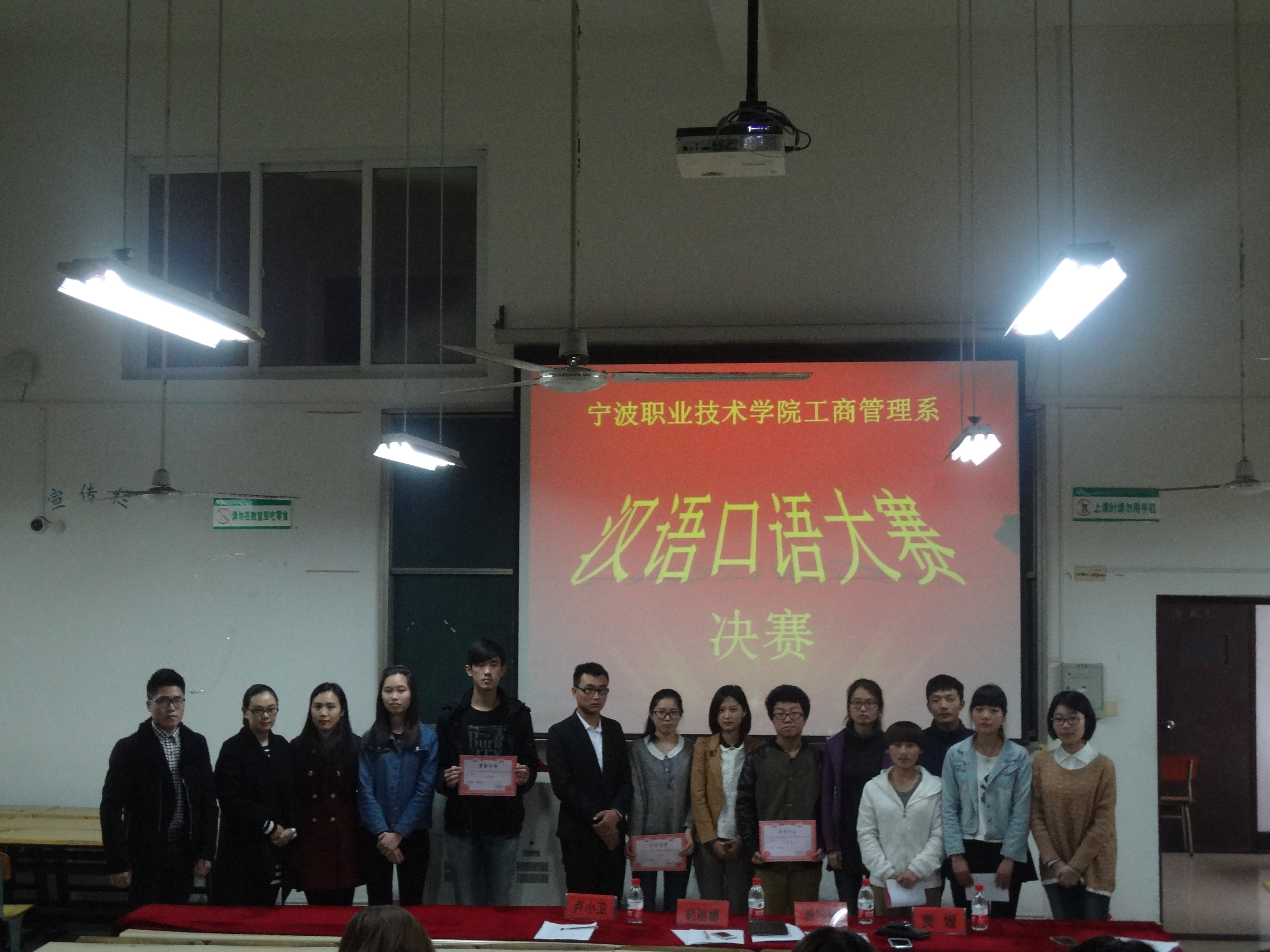 为弘扬汉语文化,增强大学生的语言表达能力,2014年4月21日下午3点半,由学院教务处主办,工商管理系团委学生会文娱部和组织部承办的汉语口语决赛在明德楼307教室准时举行。本次决赛邀请了工商管理系党总支副书记沃意琳老师、工商管理系团委老师胡丽娜、建筑工程系学生会团委副书记卢小卫和工商管理系团委副书记贾媛等担任评委,参加本次决赛的是初赛入围的十名选手。 本次汉语言竞赛决赛由“即兴演讲”和“回答问题”两部分组成。选手提前在现场随机抽取演讲辩题,准备10分钟后进行脱稿演讲。这种即兴演讲考验的是选手们果断的思维能力,挑战的是选手们冷静的临场表达技巧。比赛正式开始,选手们都十分自然地在台上演说着,见他们眉头紧锁又突然豁然开朗,引得评委老师们的纷纷点头。其中物流3133班的徐波同学表现突出,他的演讲题目是“站在烦恼里寻找幸福”,在简短的五分钟里,他精炼的向我们阐述了烦恼与幸福的辩证关系。随后,在评委评论提问环节,他也巧妙地回答了评委的问题。他以自己的实力征服了在场所有人。