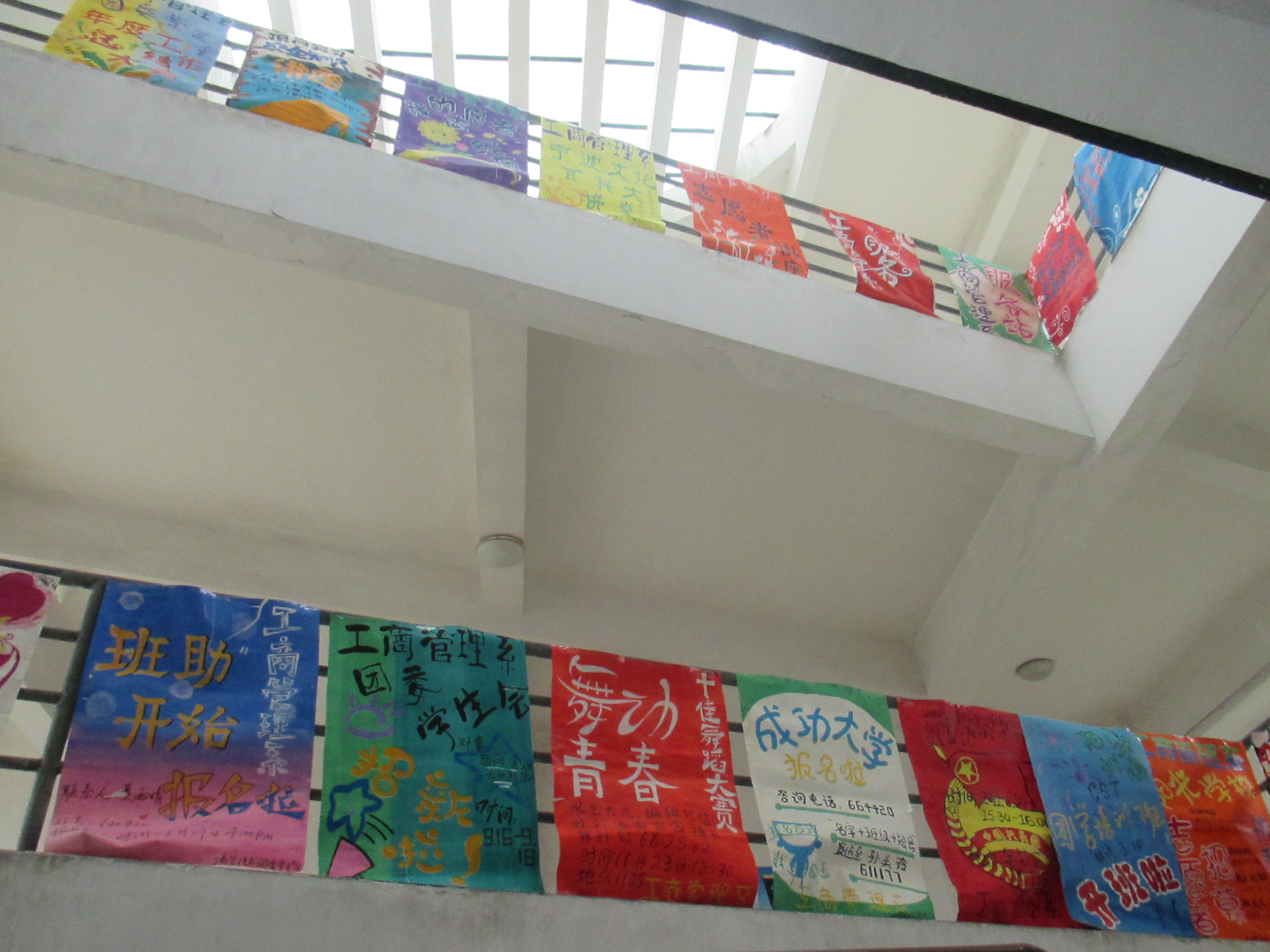 为迎接宁波职业技术学院15周年校庆,向全院师生展现工商管理系的历年精彩活动,由工商管理系团委学生会宣传部主办的“海报展”于4月22日至4月25日在明德楼每层楼梯拐角处展出。活动前期,宣传部的干事们通过画海报、发微博、qq群和联系信息部干事拍照摄影的方式将此次海报展宣传到各个领域以进行风采展示。此次整理的历年精彩海报包括“周末影院”、“讲座”、“晚会”、“比赛”、“志愿者活动”等主题,张张海报显示着工商管理系拥有着极有实力的幕后制作团队。此段时间,在工商管理系学生会办公室也会有相应的宣传部干事进行每日两人的值班,他们需要负责海报的安置与回收以及当有同学遇见询问时,进行必要的介绍。