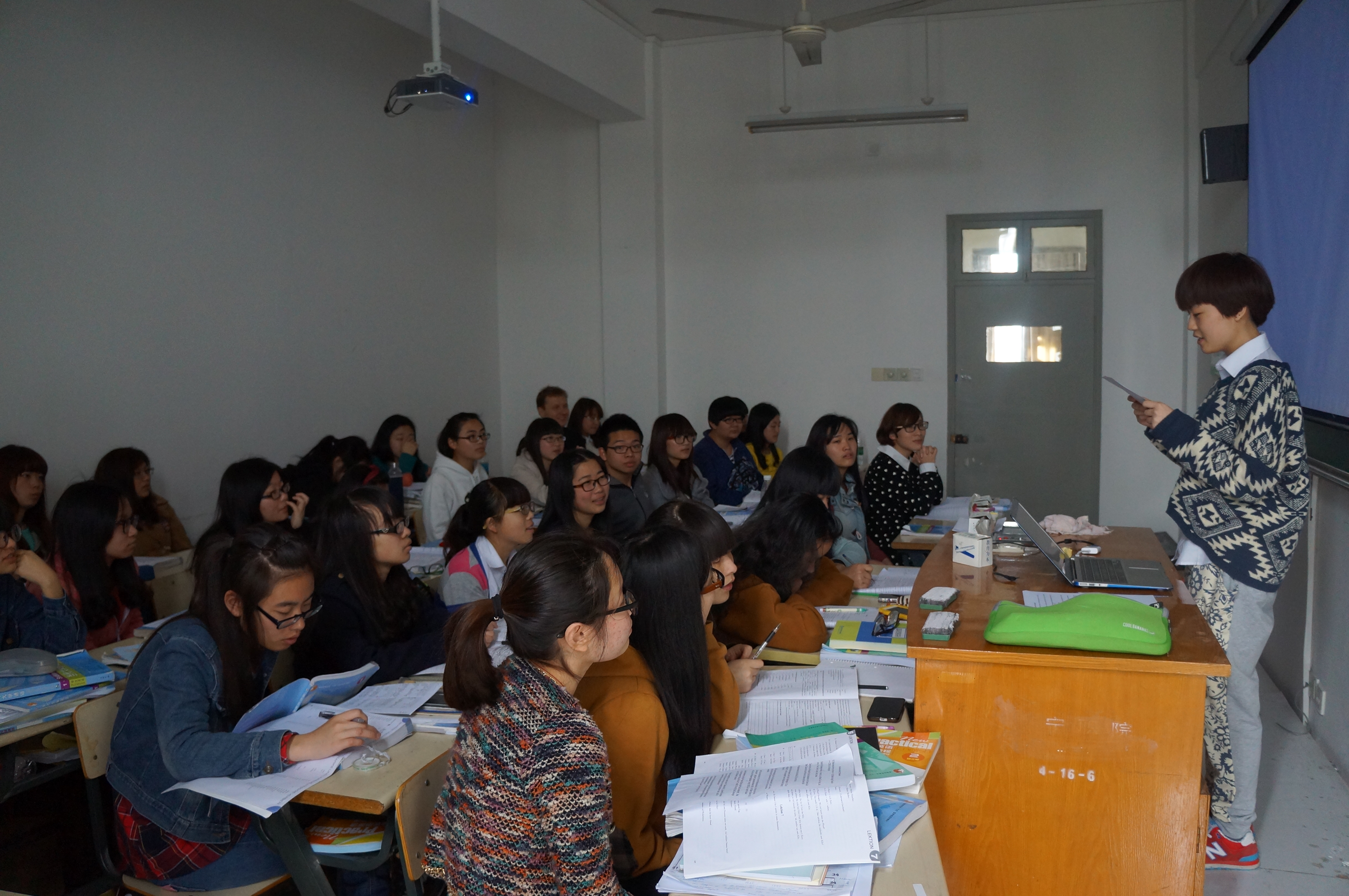 4月22日,应用德语3130班的口语技能竞赛在国际学院407教室拉开了帷幕。开展德语口语技能竞赛的目的旨在丰富校园文化生活,激发同学们学习德语的兴趣,增强校园德语学习的氛围,为全国德语技能大赛选拔优秀人才。出席此次活动的有:国际学院的两位德语老师,两位德语外教以及大一、大二的学生。