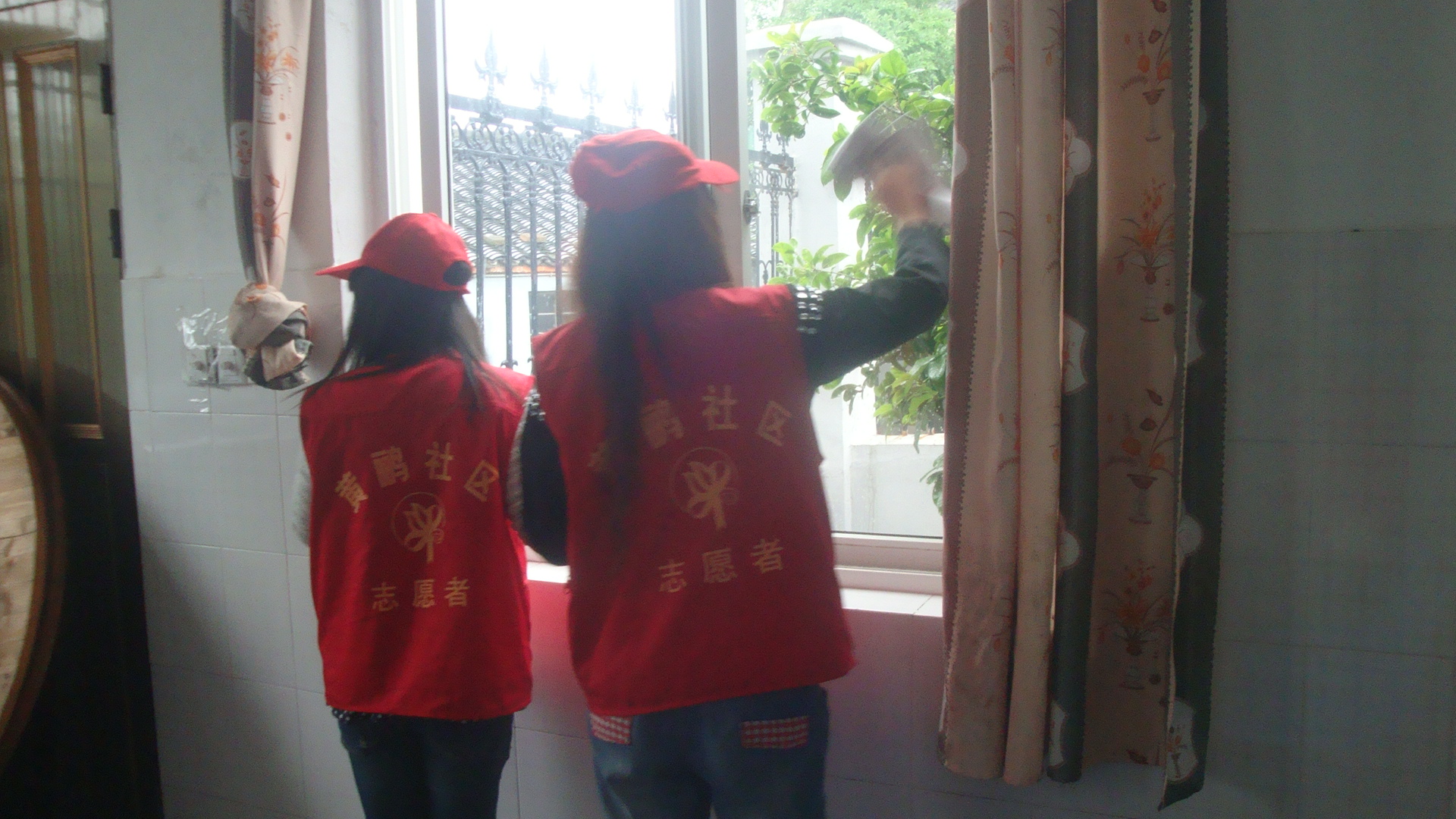 在一个多小时的清理河道活动结束后,我系志愿者部一行人又到社区福利院慰问那儿的老人,为他们打扫房间卫生。活动中,志愿者们自行分配任务,各司其职。志愿们擦拭窗户,清洁地面、工作的格外认真,时不时也会有老人过来一起参与。