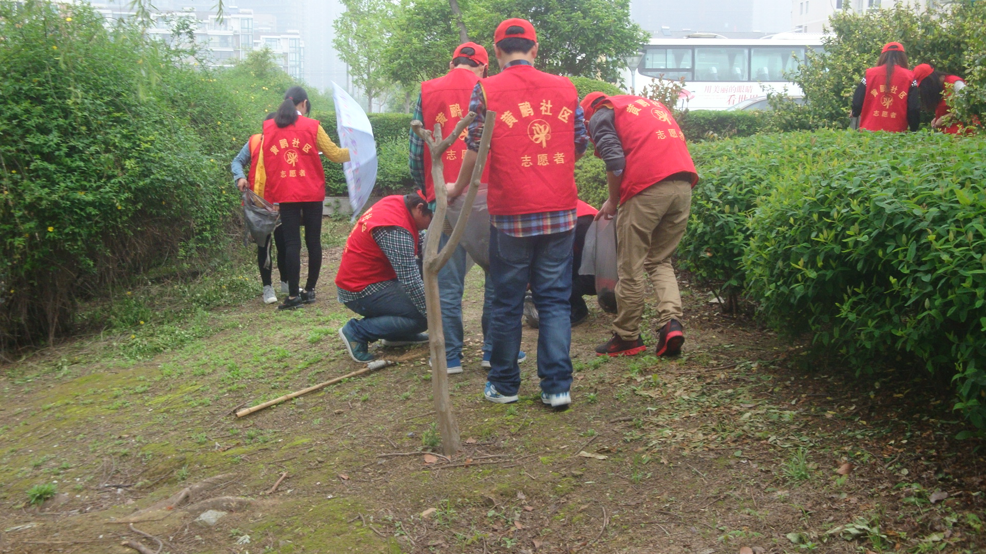 下午1时整,17名志愿者在志愿者部部长夏威栋的带领下,头戴志愿者红帽,身着志愿者服饰,着装整齐向黄鹂社区进发。到达目的地后,部长夏威栋开始布置任务,志愿者们领取垃圾袋和钳子等清理工具,本次活动主要是清理河道边及和河道中部分垃圾,志愿者清理河面上的塑料袋、泡沫板等漂浮物,捡拾河道边沿岸绿化带中的垃圾,大的如纸盒箱子,小的如塑料袋,矿泉水瓶等垃圾。