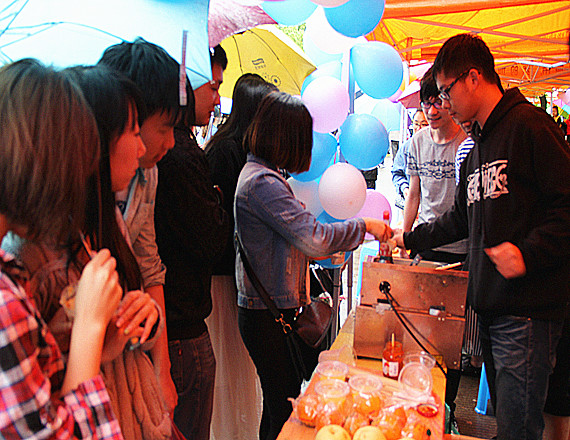 4月26日,宁波职业技术学院校庆嘉年华游园系列活动在学院文化一条街上开展。这次嘉年华活动总共分为专业特色DIY区丶游戏竞技区丶自制美食区丶非遗文化区等等。其中自制美食区尤其引人注目。