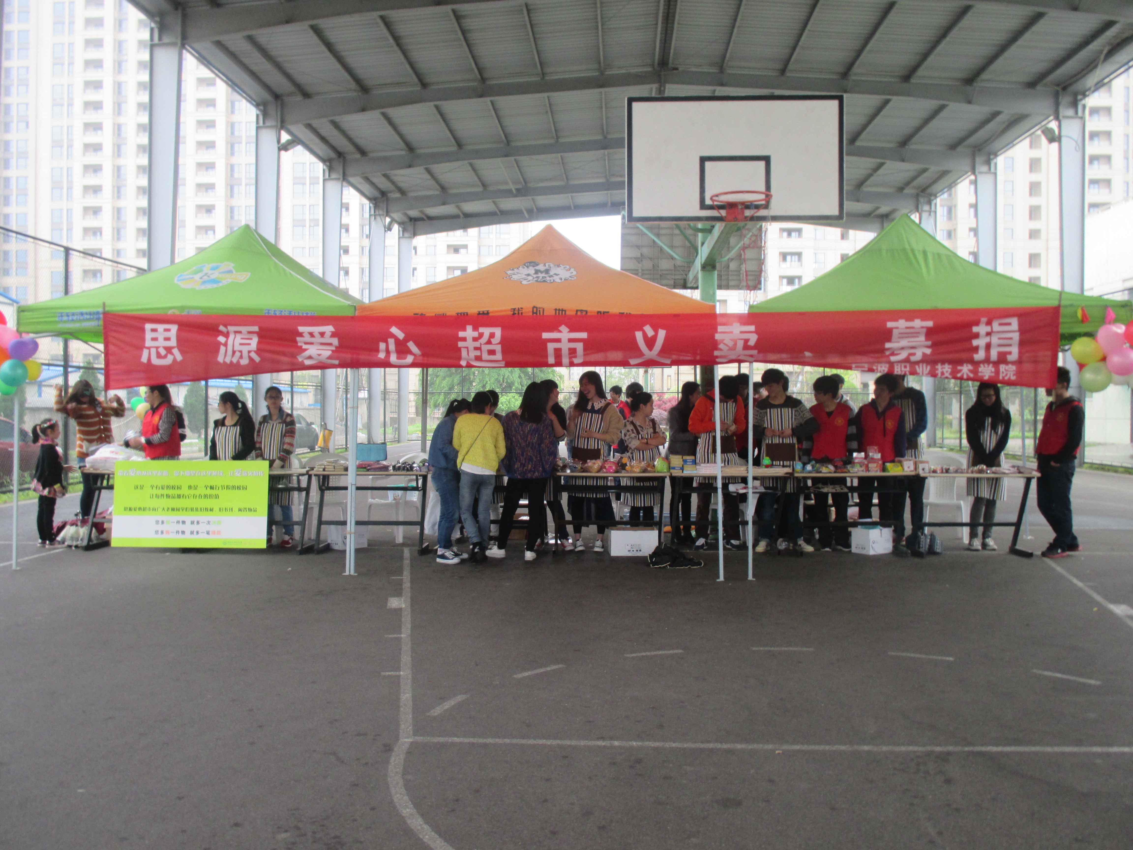 2014年4月26日是宁波职业技术学院办学55周年,建校15周年的校庆日,思源超市为热烈庆祝校庆,组织进行了义卖活动。