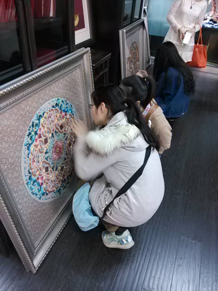 4月27日上午,宁职院刺绣协会成员在指导老师王欣的带领下参观了以刺绣为主的鄞州区非物质文化遗产基地---宁波金银彩绣有限公司。协会成员在基地负责人的陪同下饶有兴趣地参观了基地展厅。展厅分为三层,每一层都陈列着不同时期、不同种类的作品,其作品的精致程度都让同学们赞叹不已。不仅如此,基地还设置了体验区,向大家展示了作品的绣制过程,让同学们更直观地感受到每一幅作品的来之不易。