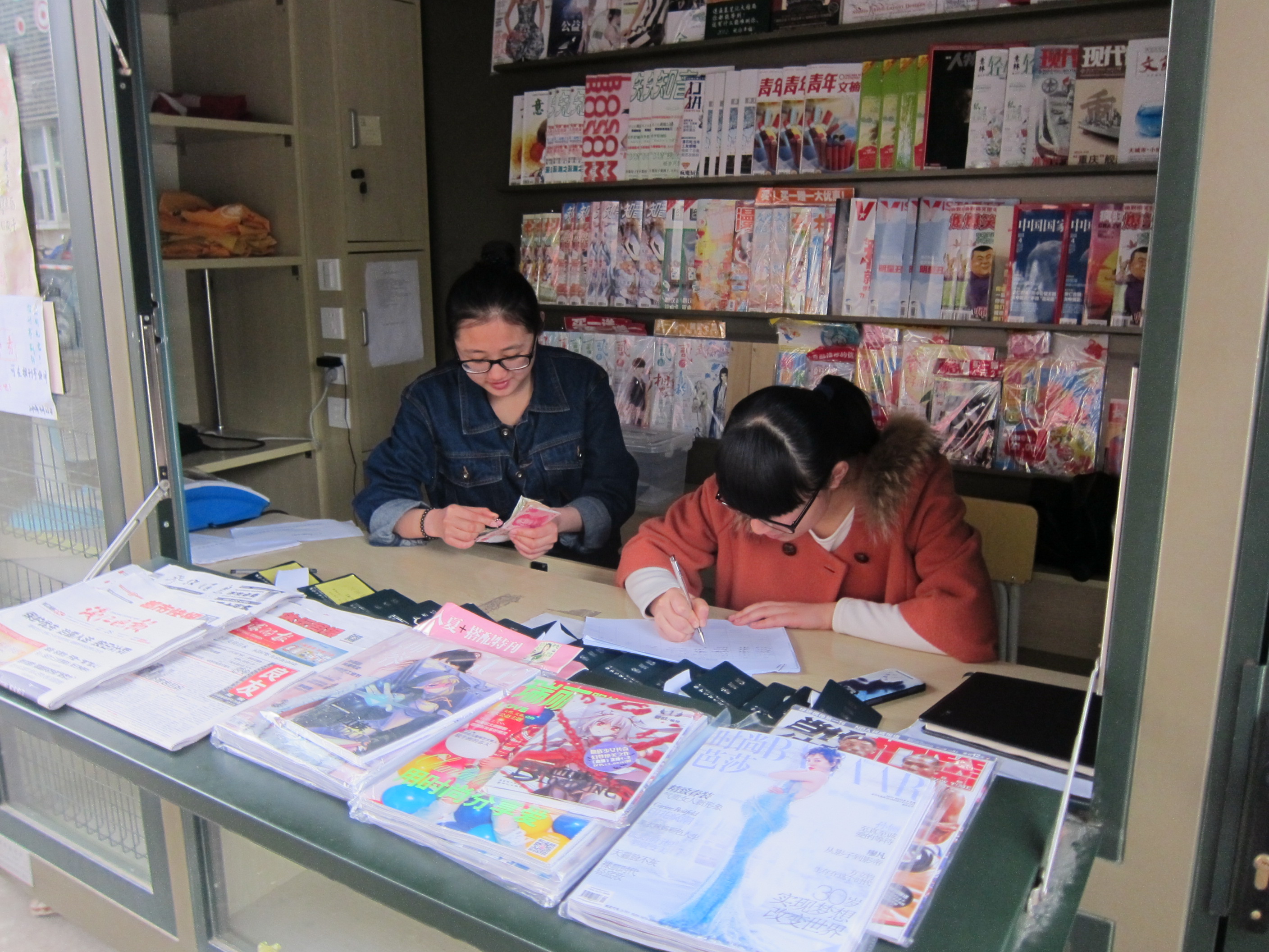 据悉,报刊亭每天营业为10:30-12:30,16:00-18:00,18:00-20:00三个时间段,每天都会组织志愿者轮流值班,志愿者们认真负责,事无巨细。全体成员均本着对“为师生便利,为他人服务”的原则来办事。