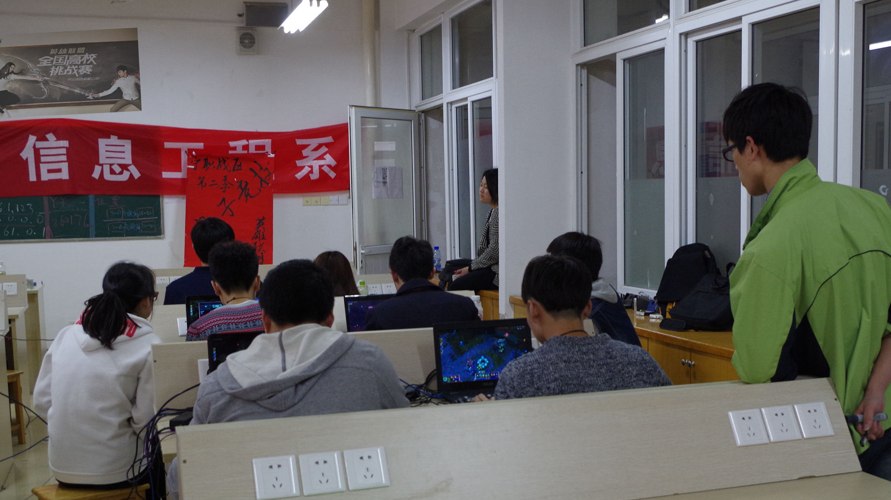 2014年5月5日中午12点30分,电子信息工程系第二届电子竞技选拔赛在敬业楼228教室举行,通过前期的两次大规模选拔,获得第三次选拔赛资格的共有13组队伍,本次选拔赛按照二进一的方式进行。