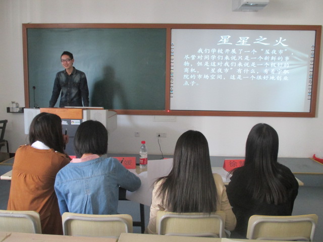 5月6日下午3点,由工商管理系主办的“慈善创业金点子”大赛在明德楼203教室举行。此次大赛评委由工商管理系分团委书记游华丽,工商管理系分团委副书记贾媛,工商管理系学生会副主席夏雨晴、徐慧担任。
