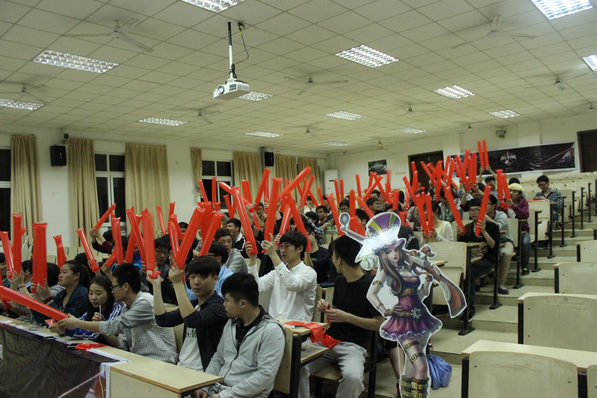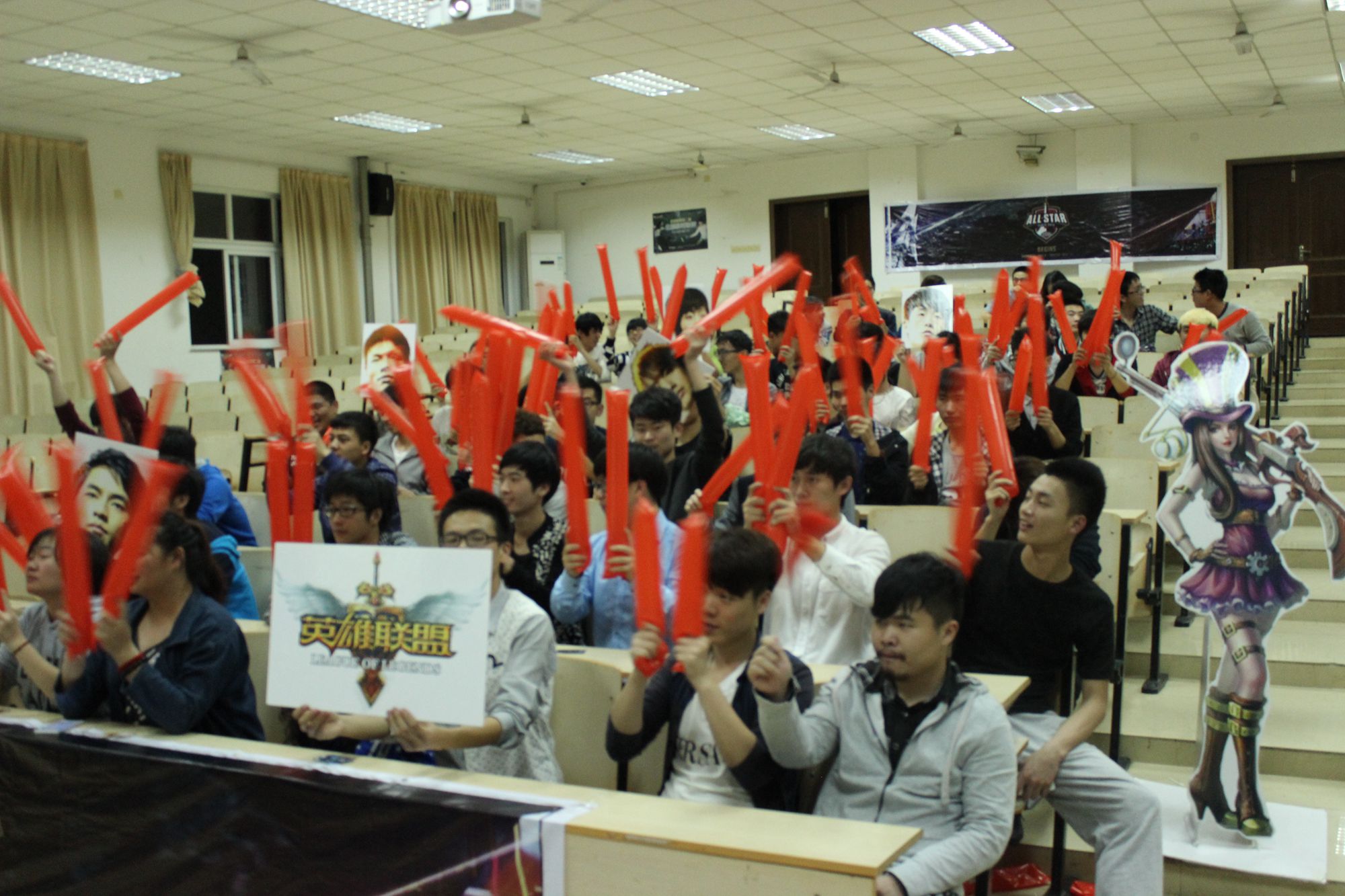 5月10日晚,电子信息工程系电子竞技赛筹备组在精技楼503教室举行电子竞技“英雄联盟”比赛项目互动会,本次互动会是以比赛参赛队伍与“英雄联盟”爱好者之间交流互动的形式举行,并为我国“OMG”(“OMG”为英雄联盟全明星职业联赛我国参赛队伍)队在巴黎举行的“全明星职业联赛比赛加油助威。”