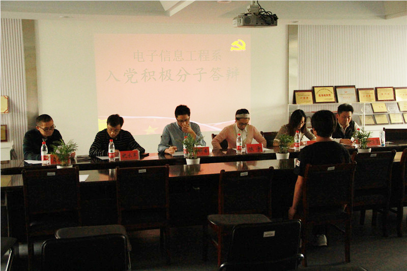 5月8日,电子信息工程系在敬业楼党员之家开展了入党积极分子答辩,此次答辩由电子信息工程系团委书记陈宇、辅导员刘利峰、胡国伟等6名老师作为评审团。本次答辩会是为了发展一批优秀的大学生党员,使党组织充满生机活力。