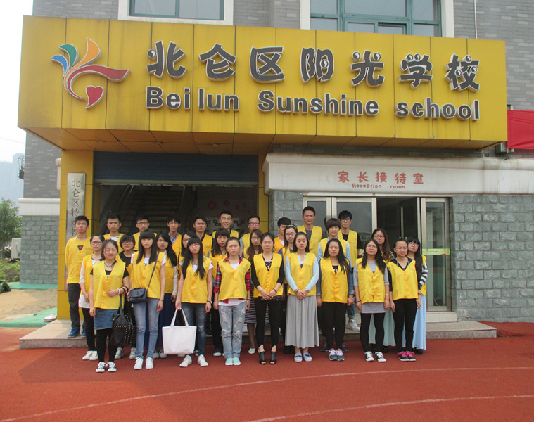画出爱的温情,点燃心的希望。每年5月的第三个星期日为全国助残日。5月15日,北仑区教育局,北仑区残联主办在北仑区阳光学校举行了一场特别的爱给特殊的你中型慈善活动。为更好的举行此次活动,31名工商管理系志愿者,用自己微薄的力量表达着对这些“星星”的关爱,用他们的温暖和鼓励,让这些折翼的天使看到透亮的光芒。