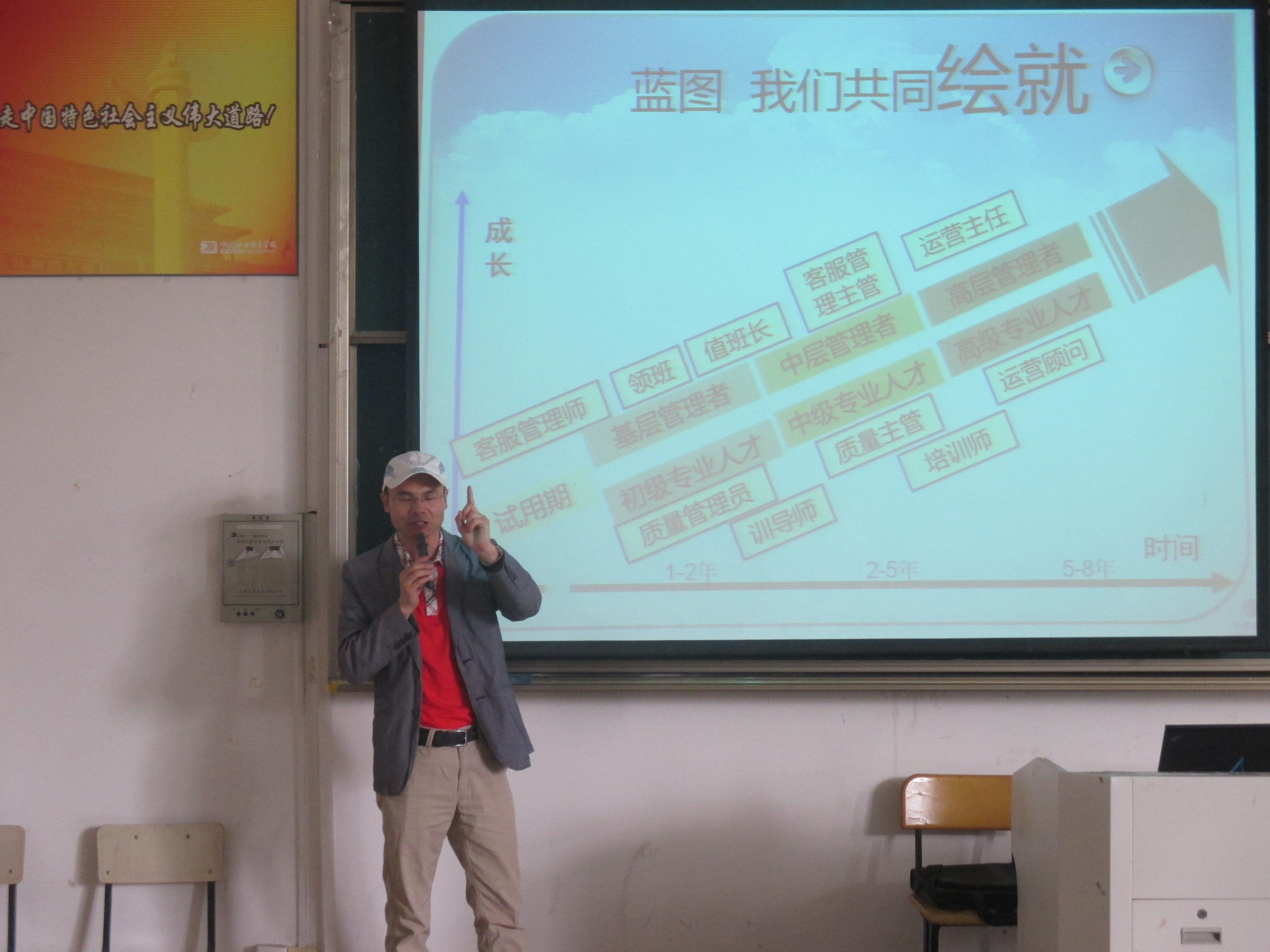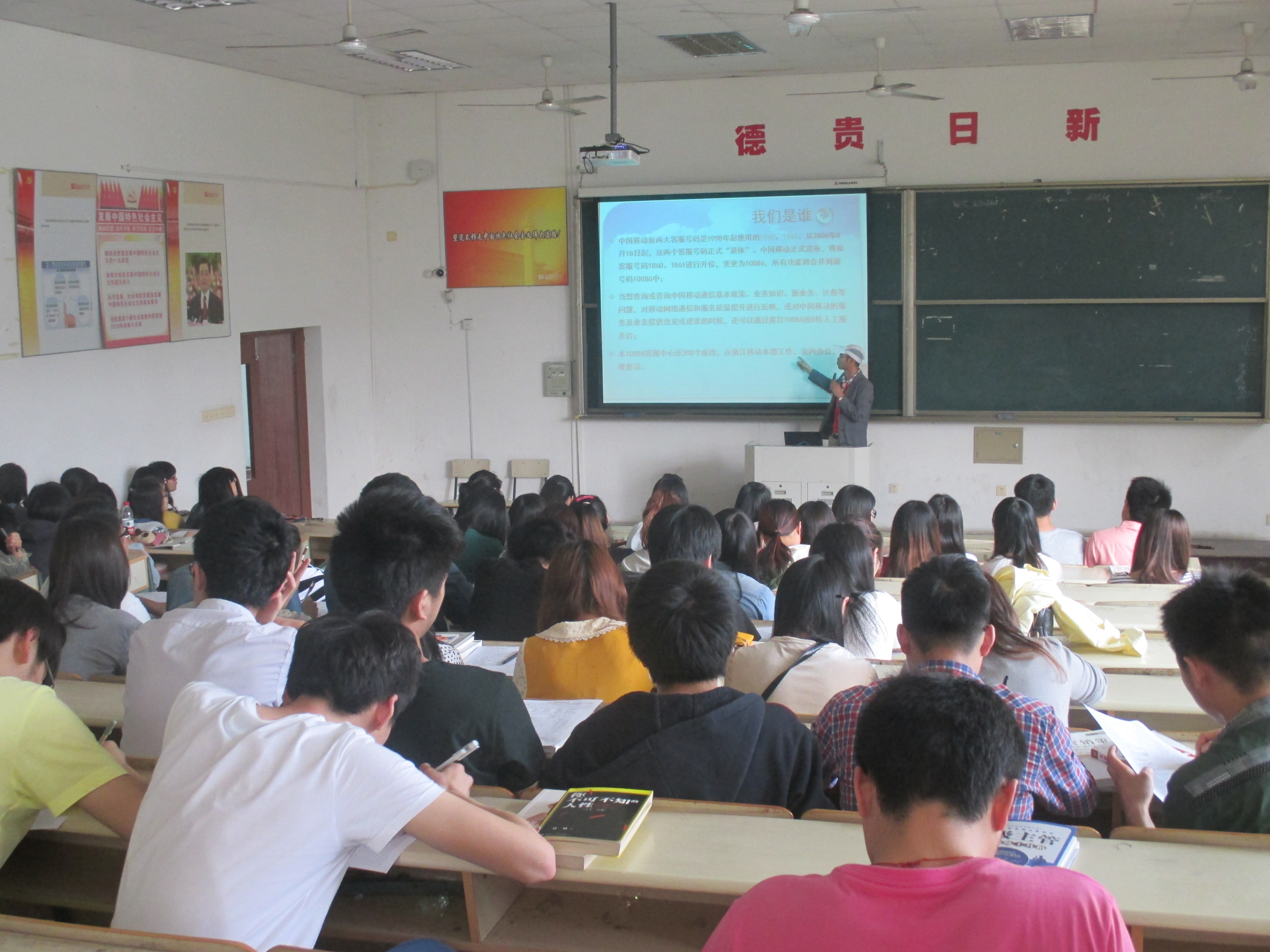 时光匆匆,岁月如梭,毕业季已至,为大二学生提供更多就业机会,丰富更多就业意识,工商管理系于2014年5月20号,在明德楼103教室,特邀浙江移动客服中心开展就业招聘宣讲会,此次宣讲会由该公司史经理主讲。我系市场营销3121与市场营销3122两个班参加了此次宣讲会。