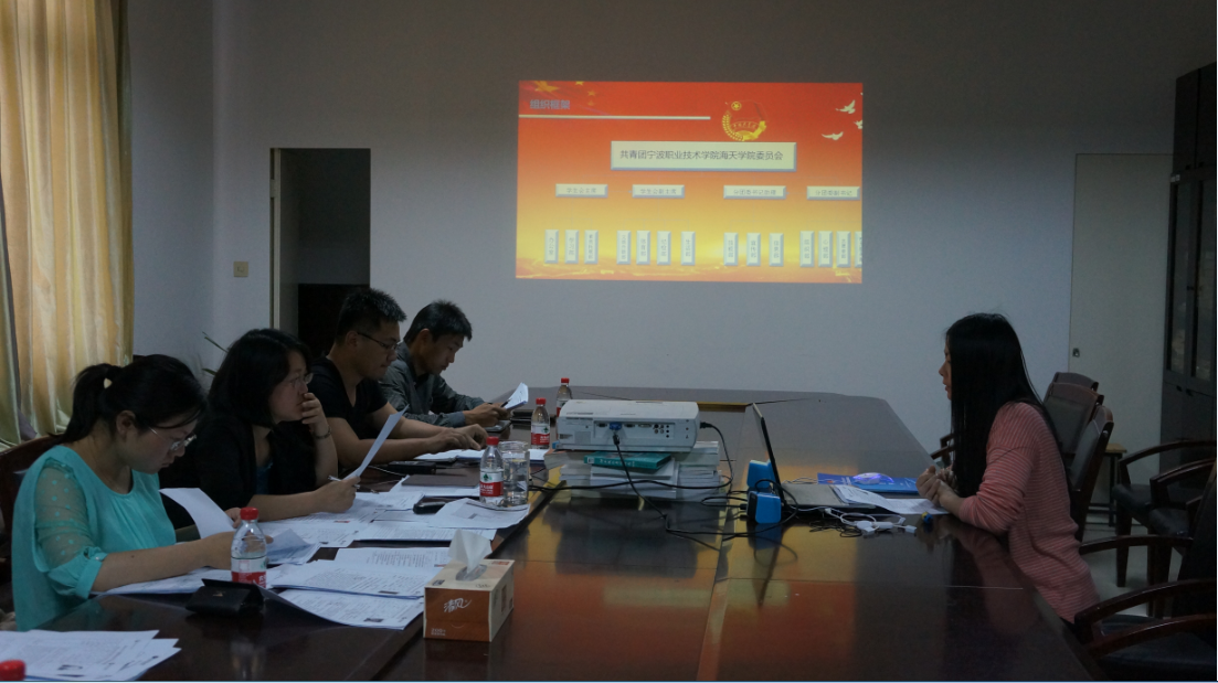 2014年海天学院第五次团学换届竞聘面试会于5月22日下午在海天楼301会议室举行。我院党总支副书记王灵玲老师、分院团委张日益老师、朱娟老师、陈姜帅老师及学生会主席翁利强、副主席姜媚燕担任了本次面试官。据悉,来自我院各部门的42名干事将参加本次面试。