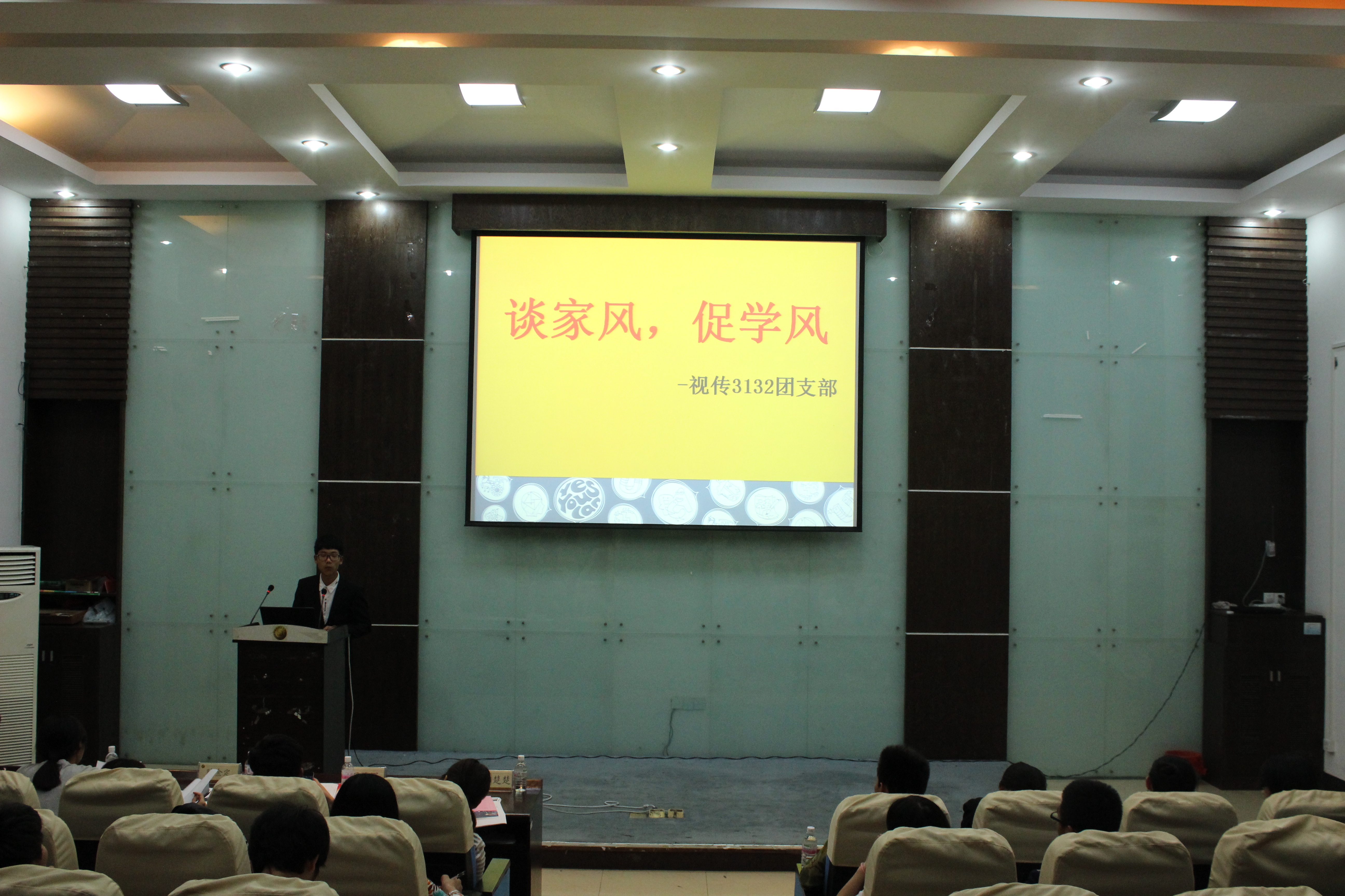 答辩会共有24个团支部参加,上台进行团日活动PPT的演讲。主要内容都是围绕“家风、学风、校风”展开,每个团支部代表认真解说,思路表达清晰,将自己班的团日活动内容生动地介绍给评委和观众。