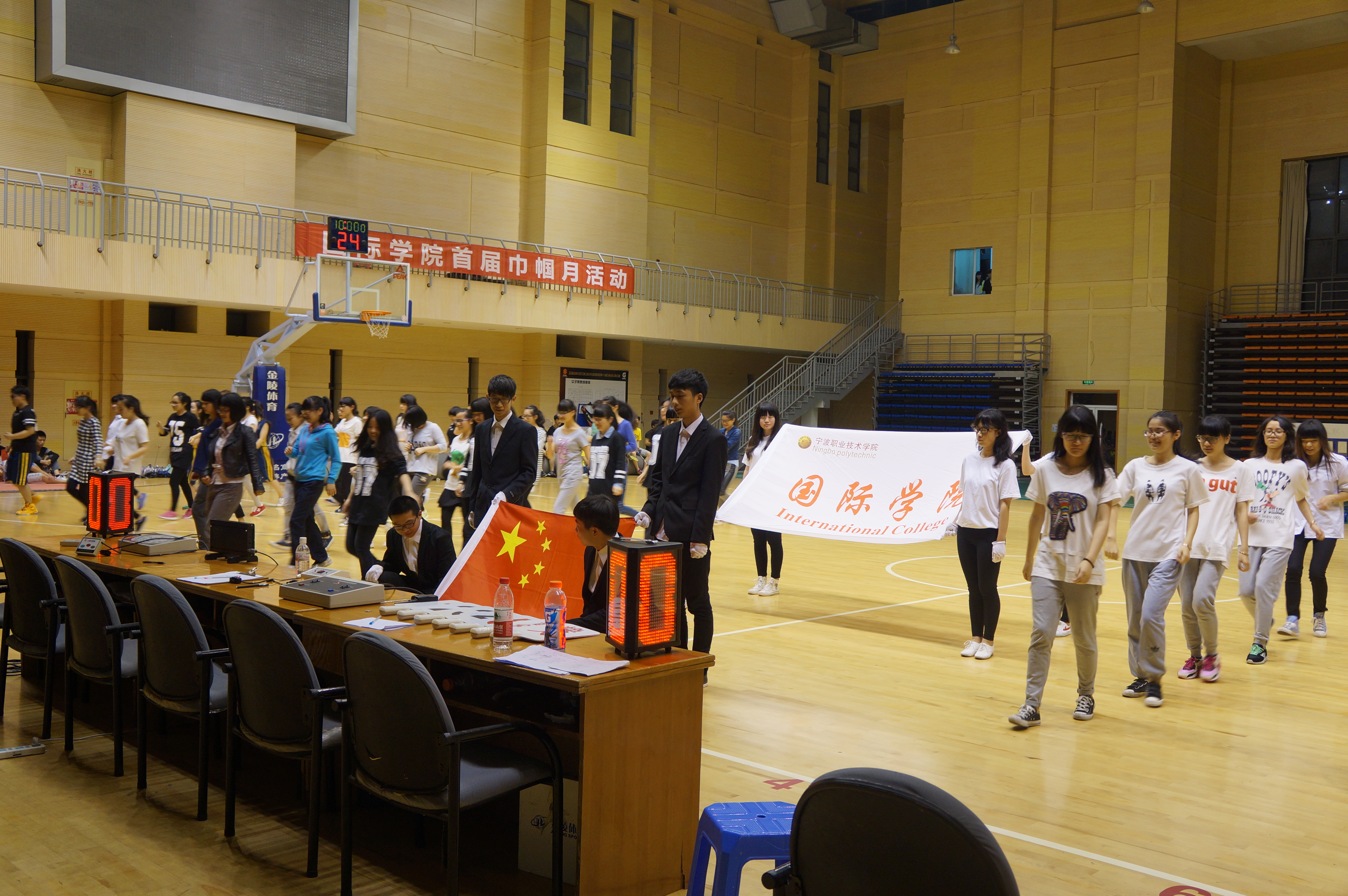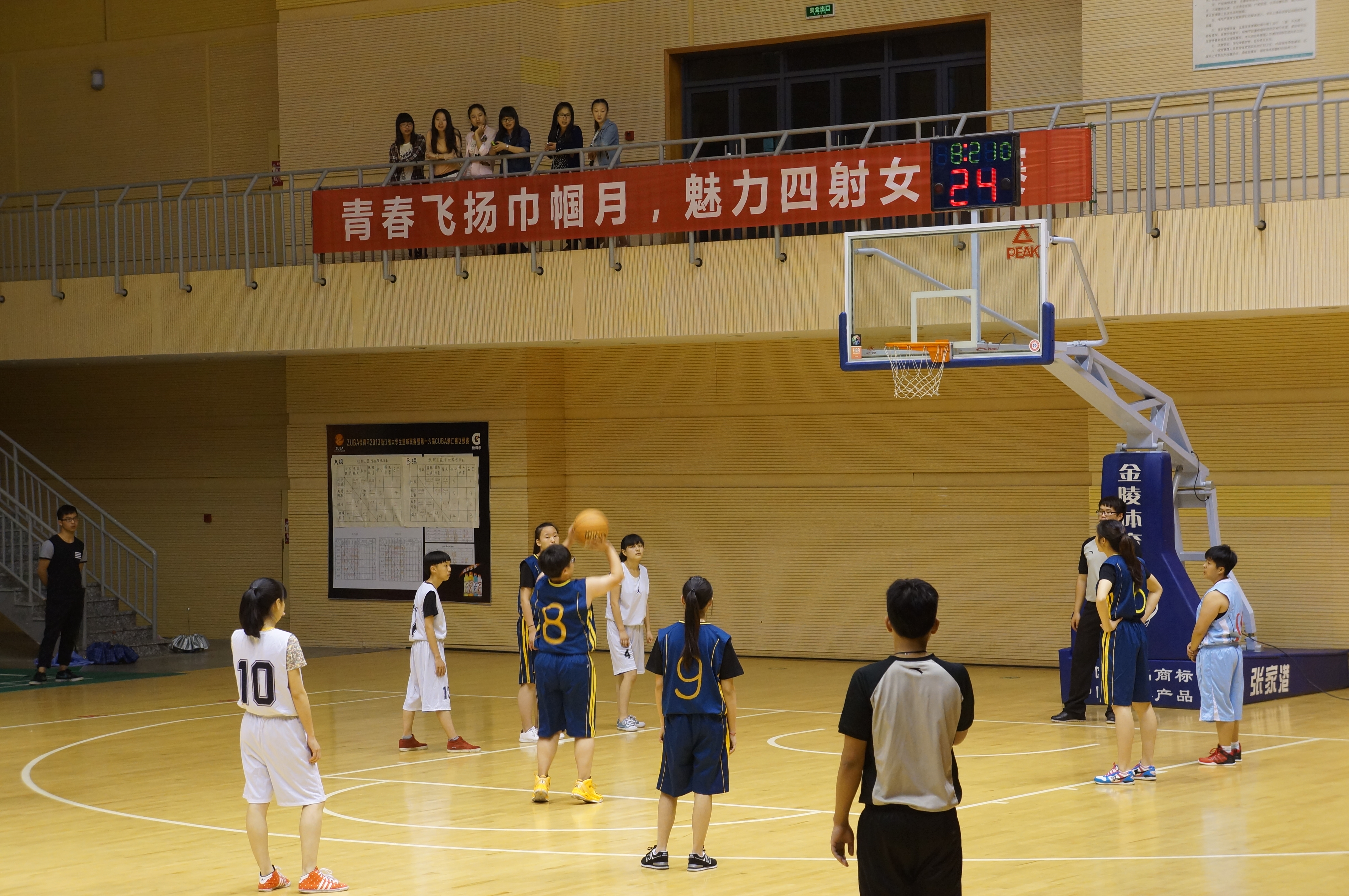 国际学院女教工与女学生“巾帼不让须眉”,在2014年初获得省级“巾帼文明岗”荣誉称号。以此为契机,国际学院第一届“巾帼月”主题活动应运而生。“巾帼月”共有4个子活动组成,分别是:国际学院女篮夏季联赛,国际女生旧物捐赠结对社区,“音为梦响”国际最强音歌唱比赛,“信连心”卡片寄意活动。本周,国际学院“巾帼月”开幕式暨国际学院女篮夏季联赛在顾国华体育馆顺利举行。出席本次活动的领导分别有国际学院院长吴柏祥老师、公共关系教育主任叶鹏老师、国际学院“巾帼文明岗”岗长周英华老师、国际学院“巾帼文明岗”副岗长段丽娟老师、国际学院团委屠琳琳老师、军体部刘雪凯老师以及军体部陈显健老师。