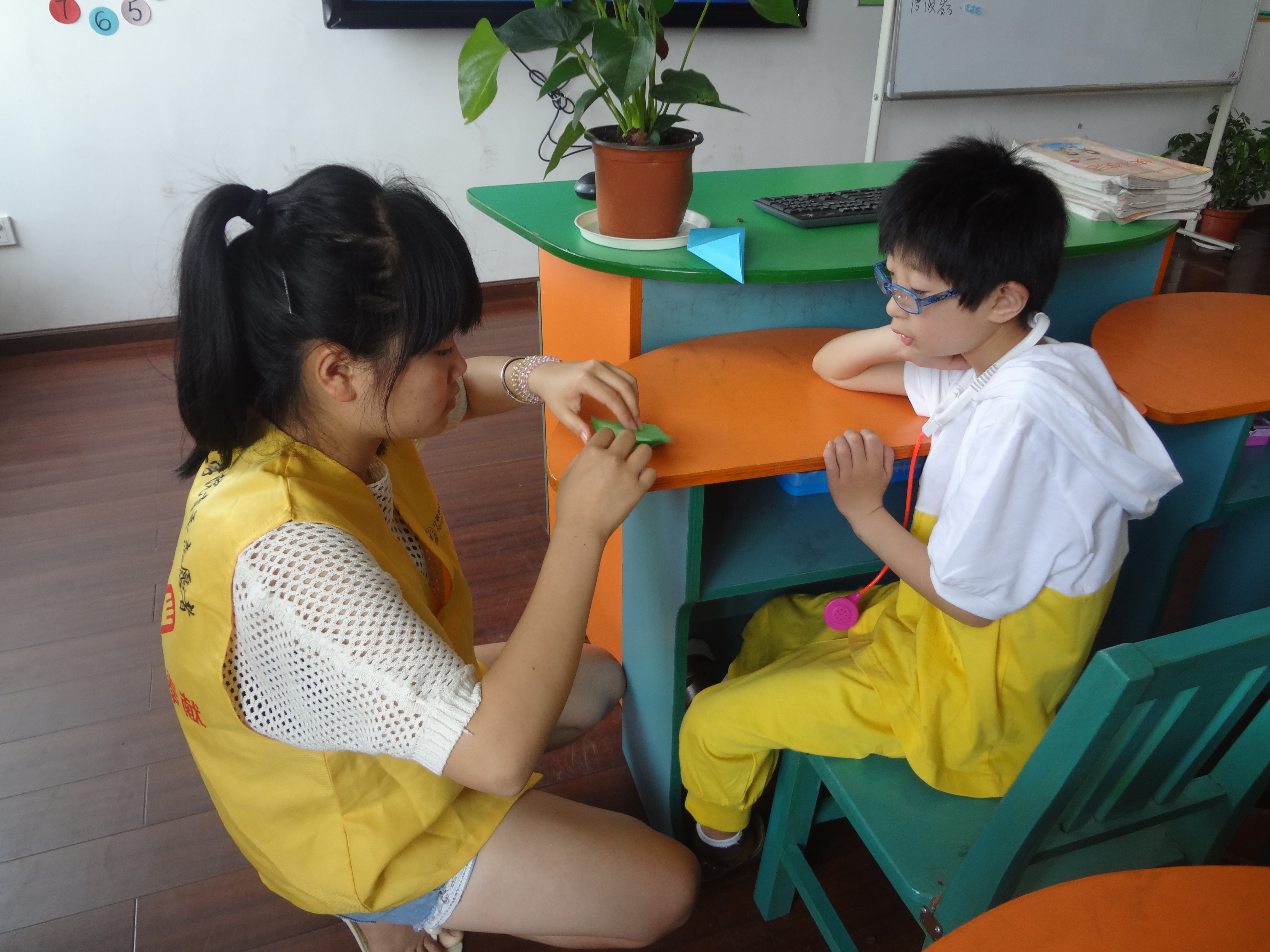 在进行了简单的分配任务后,志愿者们分别进入了各自所要带领的班级。今天的上课主题是“关于儿童节与端午节”,志愿者们首先通过ppt的形式,对小朋友们进行授课,一边讲课一边与小朋友们进行互动,很快地,志愿者们带动了整个教室的氛围。随后,志愿者们又手把手教小朋友们折千纸鹤,虽然折千纸鹤对孩子们来说有一定的难度,但他们还是努力地学着,抓着志愿者们学的不亦乐乎。紧接着,志愿者又与他们一起看动画片、唱歌,在志愿者们的带领下,孩子们活蹦乱跳,整个教室充满了欢声笑语。孩子们热情的喊着哥哥姐姐,到处充满了温馨的画面。