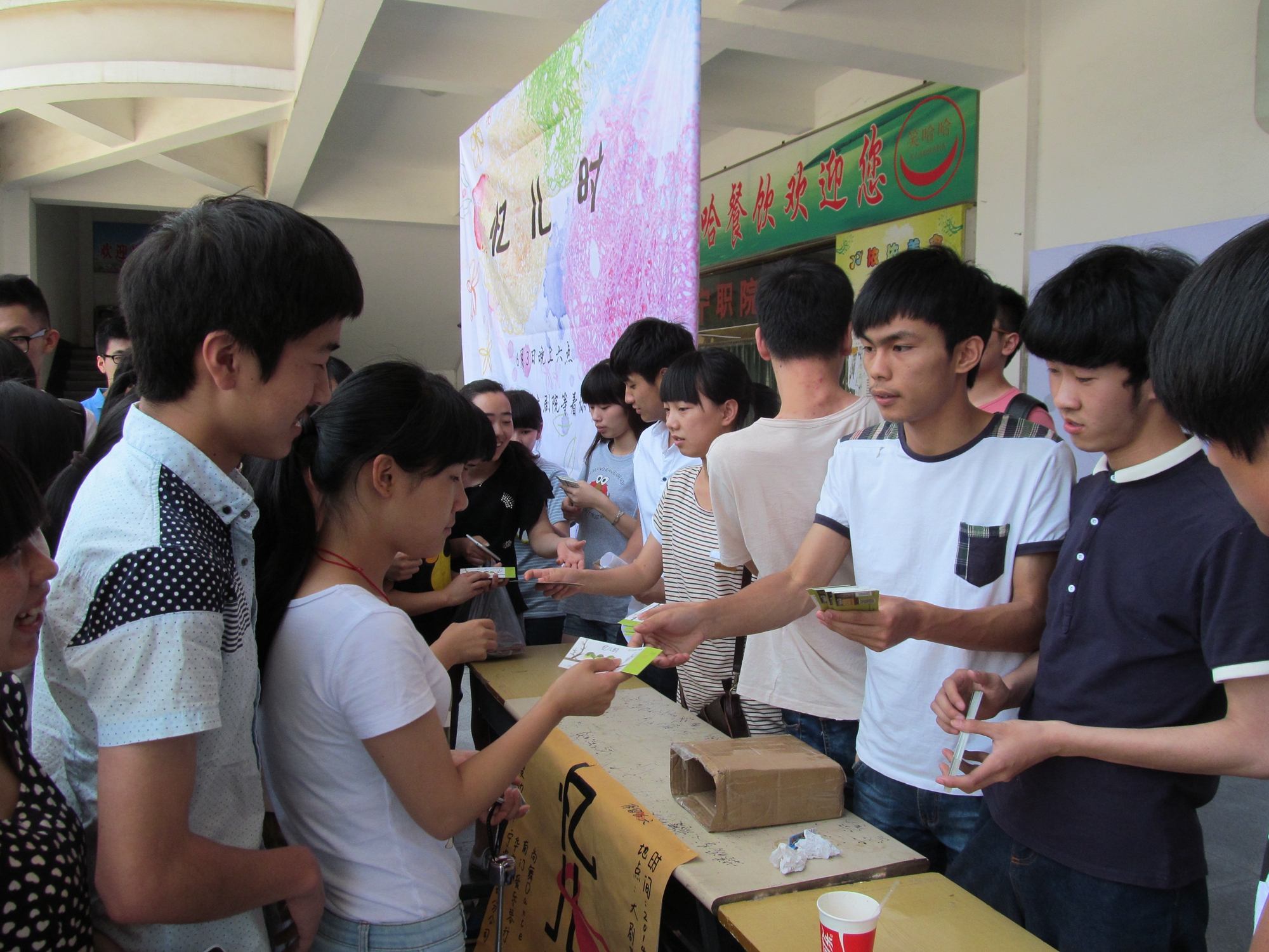在发票的过程中,助理们一直在那里高喊:“忆儿时”抢票活动开始了,赶快来抢吧!”之类的话语。短短的几分钟的时间,票就被同学们给抢光了,很多慕名而来的同学都为不能提前抢到票而感到沮丧,都恨不得早点来。就此,“忆儿时”的抢票活动到此结束了。