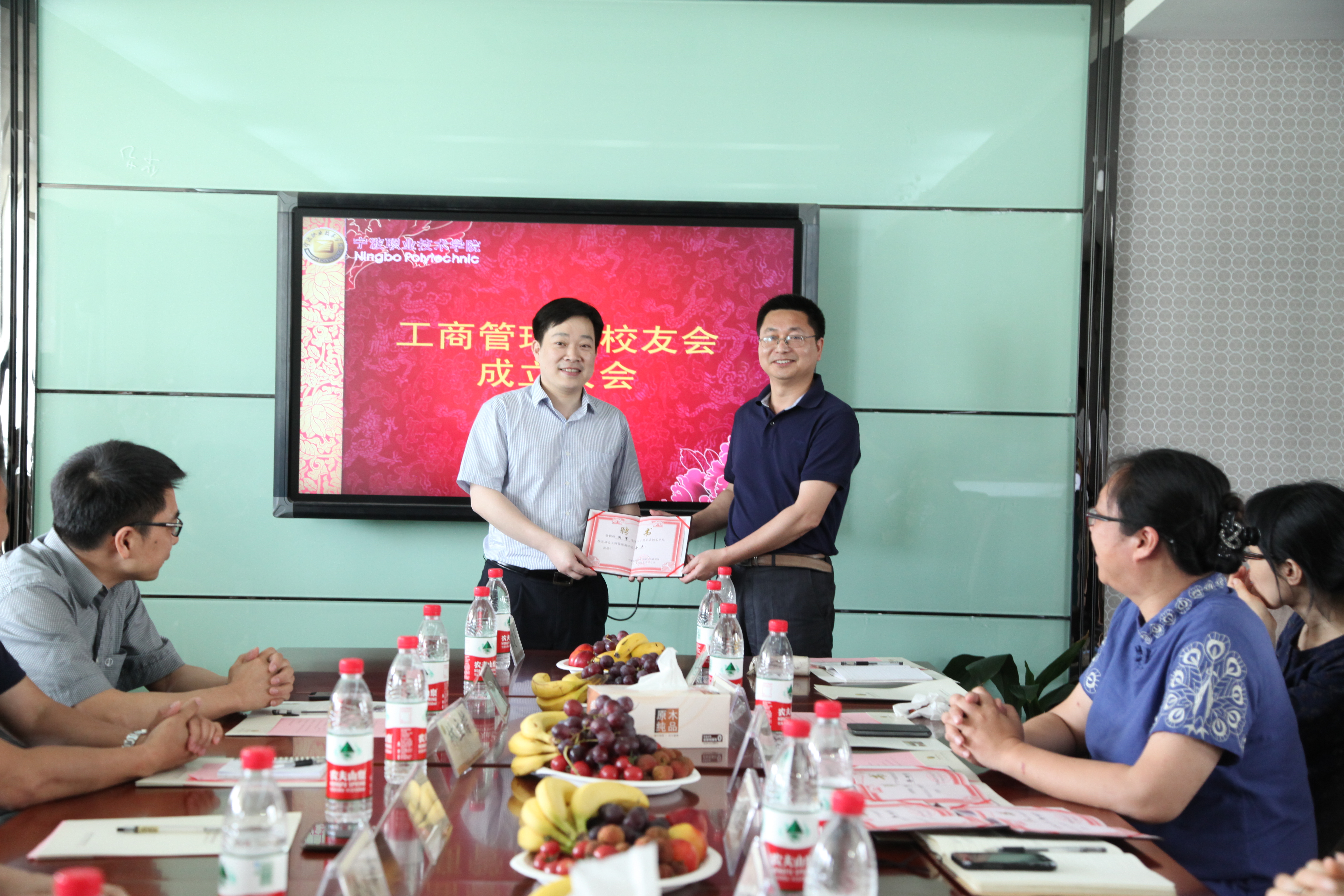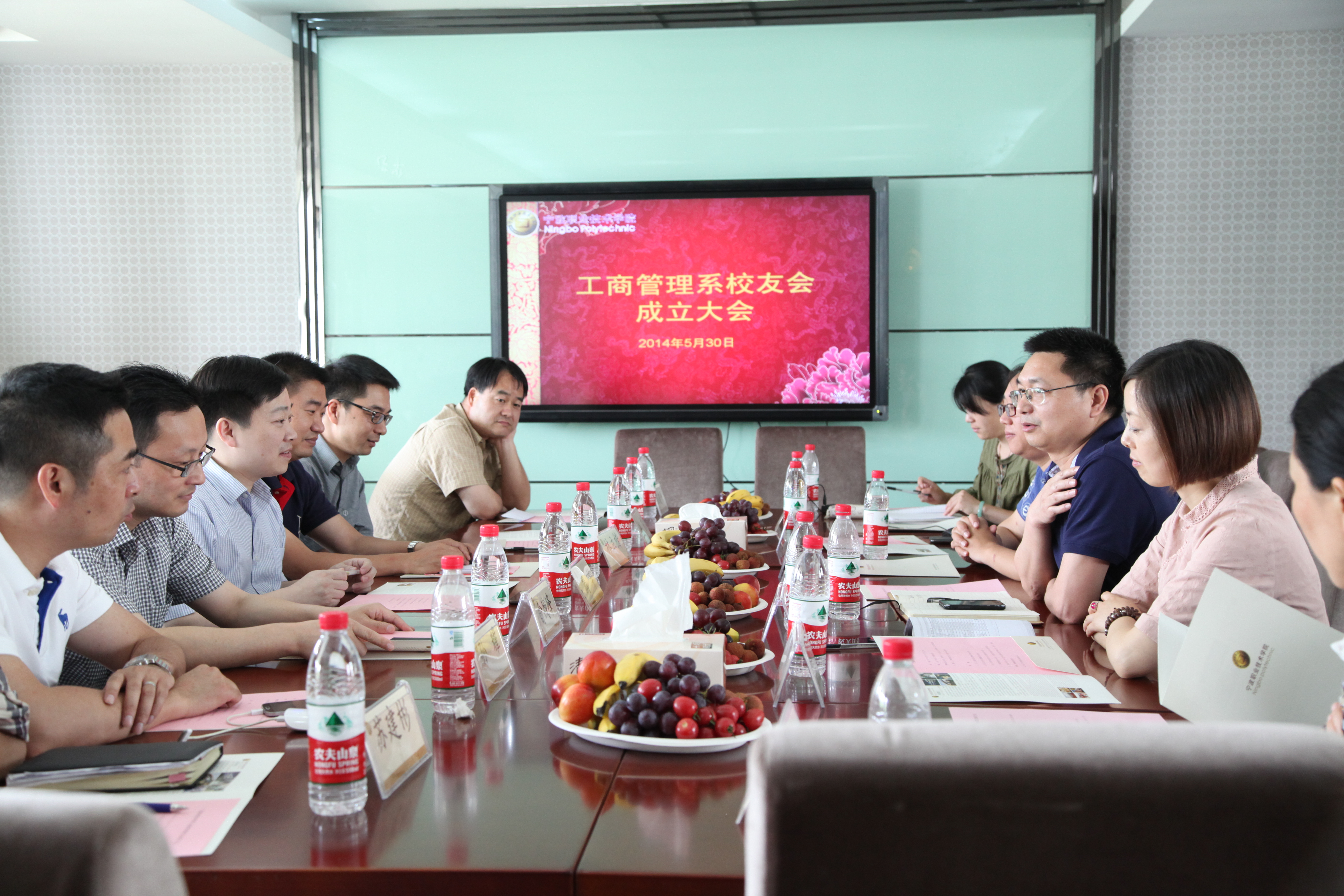 宁职校友共相盼,喜迎校庆谱新篇,正值学院办学55周年庆典之际,工商管理系于5月30日下午在明德楼商务谈判中心隆重举行系校友会成立大会。出席此次大会的有23名成功校友代表,工商管理系主任周亚老师,系党总支书记裘腰军老师,系副主任沈文天老师、叶陆艳老师以及各专业主任等。会议由系党总支副书记沃意琳老师主持。