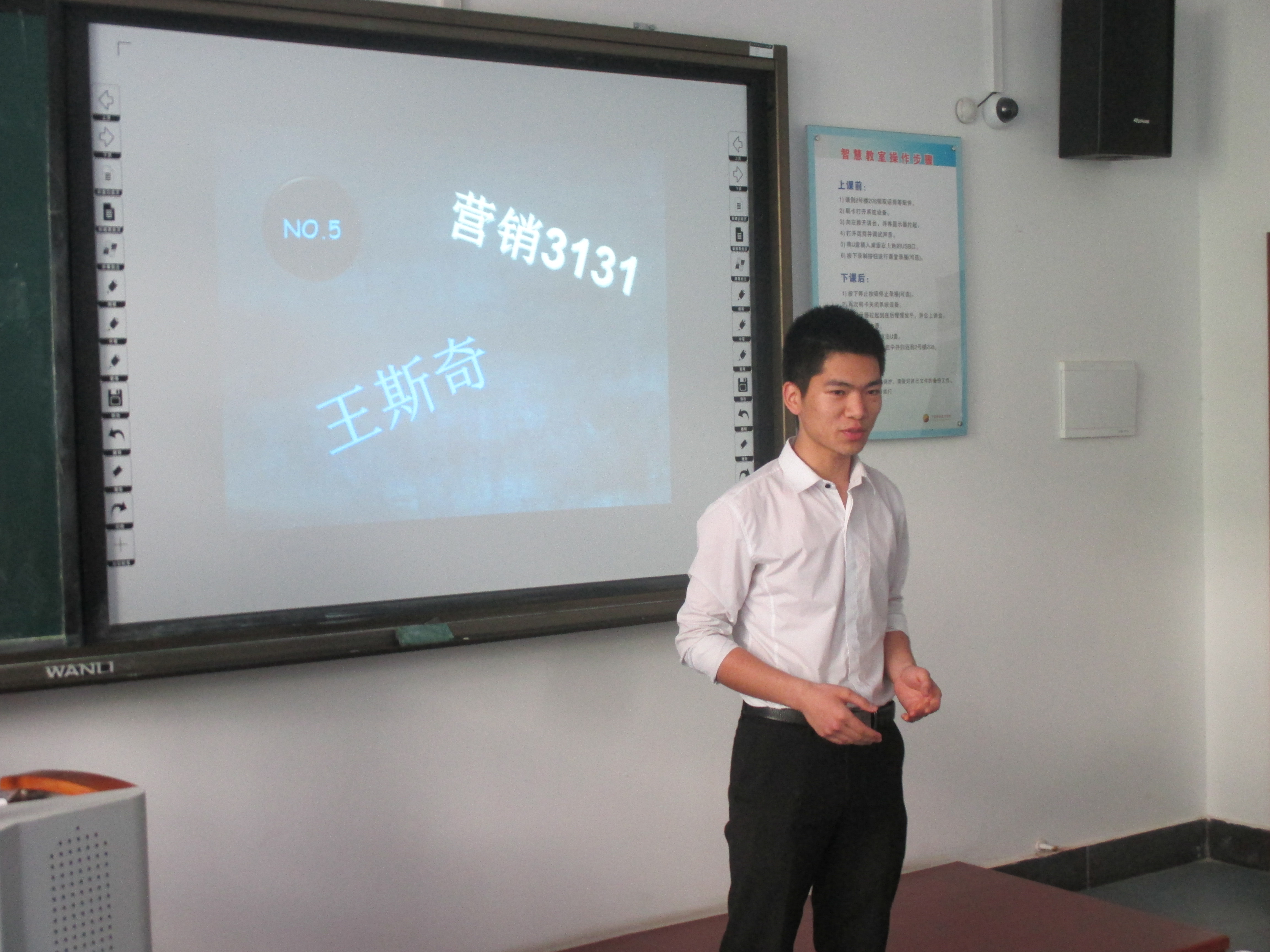 此次比赛一共9位参赛选手,工商管理系出战3位。随着主持人宣布比赛正式开始,选手们便开始在台下做着一系列的准备。工商管理系首先出场的是市场营销3132班的王斯奇,他一上台就向评委和观众热情的问好,自身阐述了对“90”后的看法,以铿锵有力的声音告诉大家,“90”后不是他们眼中的那样不堪,“90”后也很棒。在演讲途中,他还不停的与观众互动,观众们也是热情回应。最后,他以自己的经历告诉所有人应该坚持自己的梦想,不言放弃。其他选手的表现也都可圈可点,深入人心。