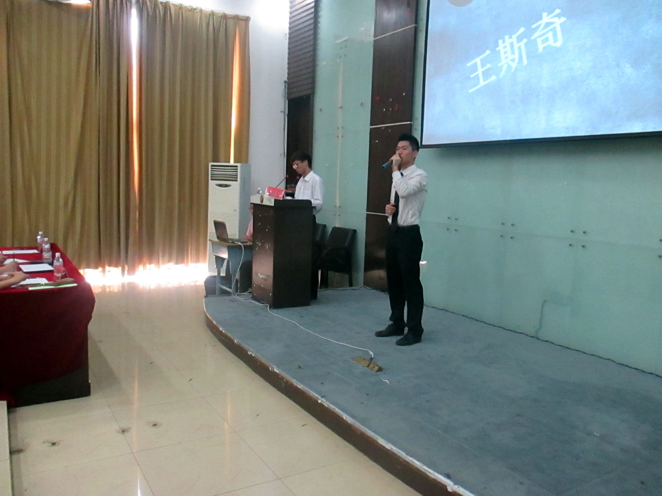 比赛在主持人的开讲词中正式开始,首先出场的是来自工商管理系营销3131班的王斯奇同学,他演讲的内容是用素质拓展的方式去鼓励自己,给自己足够的信心和鼓励在自己行走的道路上,赢得台下掌声一片。接下来出场的是来自物流3133的邵树伟同学,他的主题是“父母的爱”,让台下的观众无不为之动容,加上音乐的伴奏,使演讲显得更加生动、动人,有些观众甚至落下了眼泪,可见他此次演讲的生动性。接下来出场的便是其他系的选手们,表现也都非常精彩。