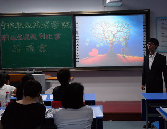 为了更好的传播和普及职业规划理念,引导同学们科学定位自己的发展方向,2014年6月12日晚六点,宁波职业技术学院于在二号楼111教室成功举办了院级大学生职业生涯规划大赛总决赛。本次比赛由各院级资深老师作为本次比赛的评委。而参赛者是由各个系选拔出来的优秀分子,其中包括三名建筑工程系的同学.