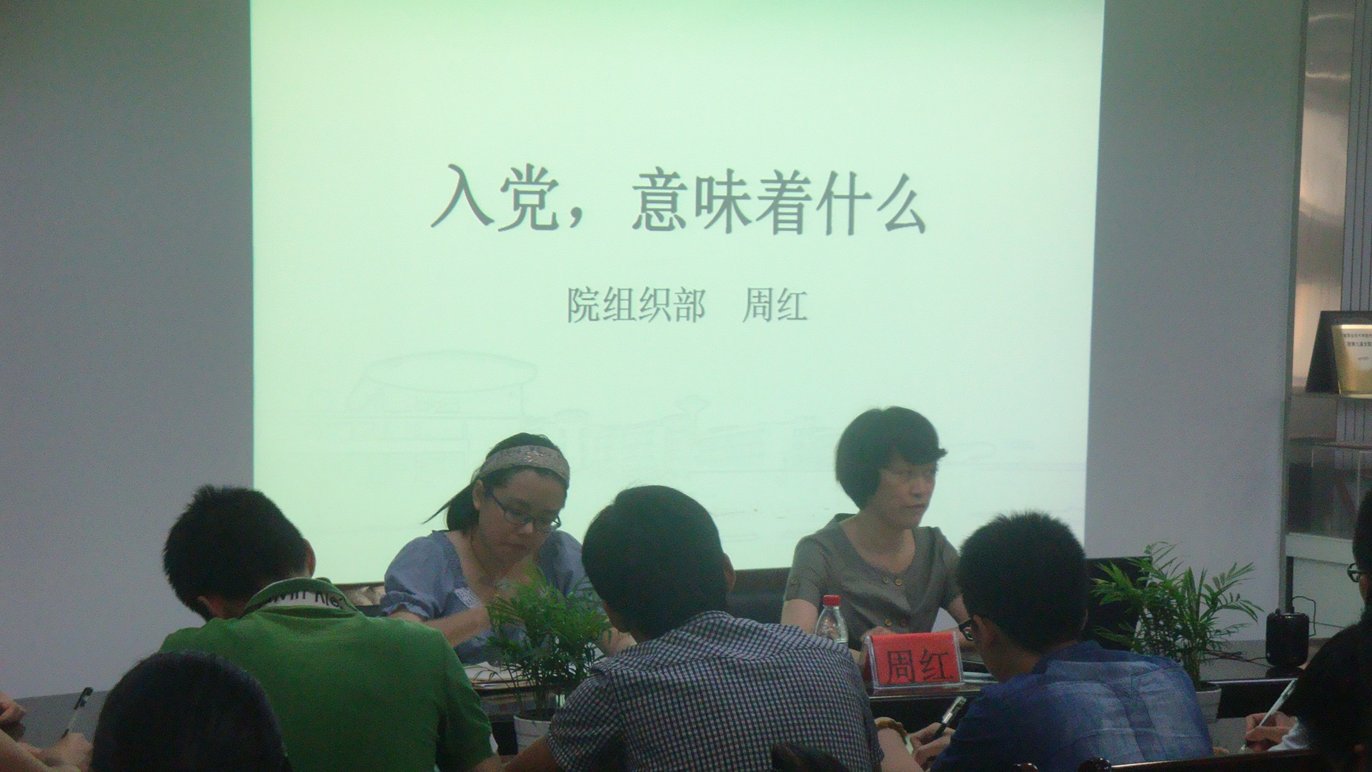2014年6月13日中午12点30分,为使我系学生能正确认识入党意义,对党员有充分的角色认知。我系在敬业楼党员之家召开了党课,并邀请了我院组织部周红老师为大家讲课。