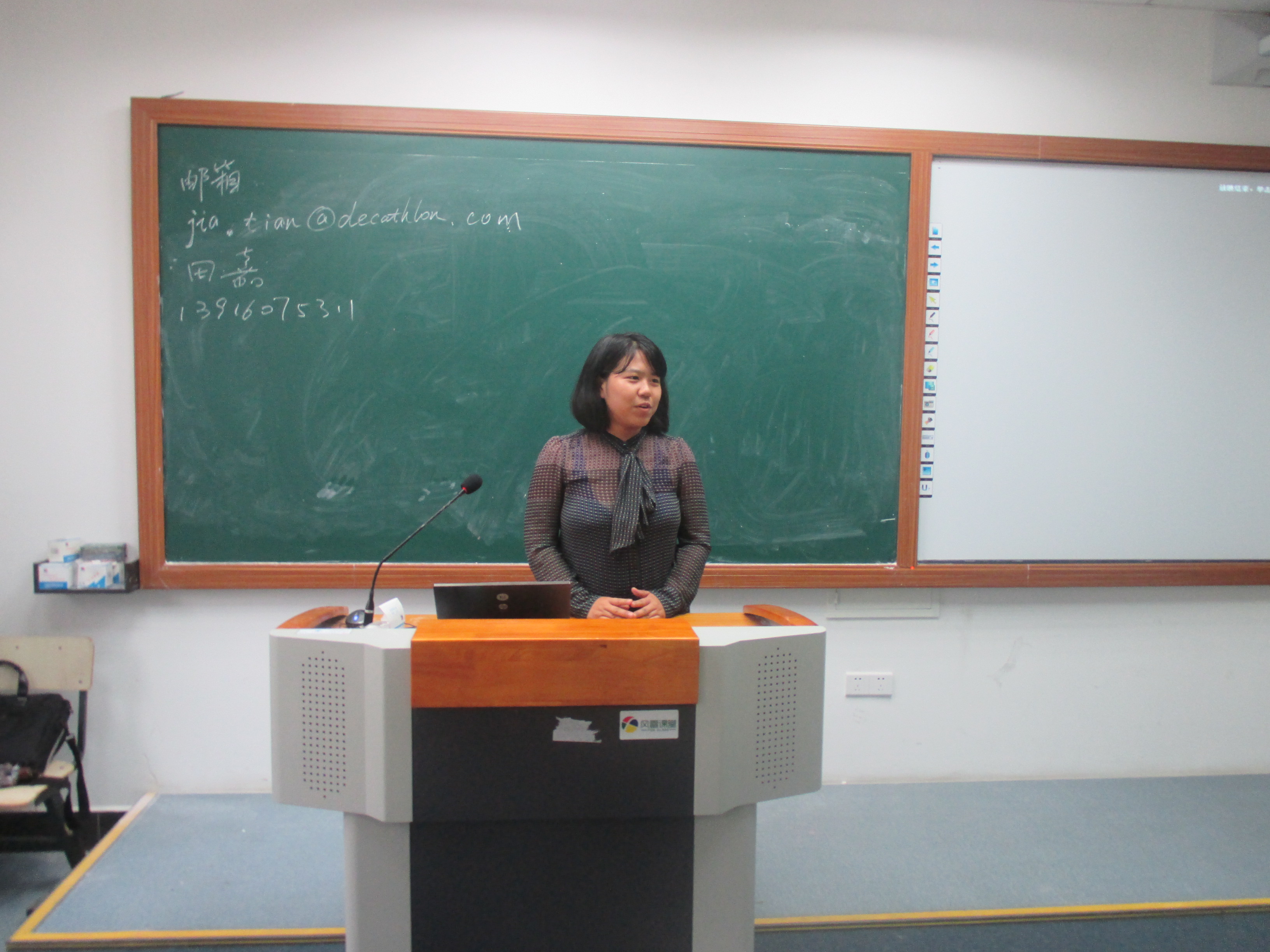 6月17日中午12点半,工商管理系于明德楼203教室拉开了法国迪卡侬公司北仑银泰店招聘宣讲会的序幕。北仑迪卡侬银泰店店长以及分店各部门经理来到现场,除此,参加此次宣讲会的有电子商务3120班和市场营销3121班的同学。