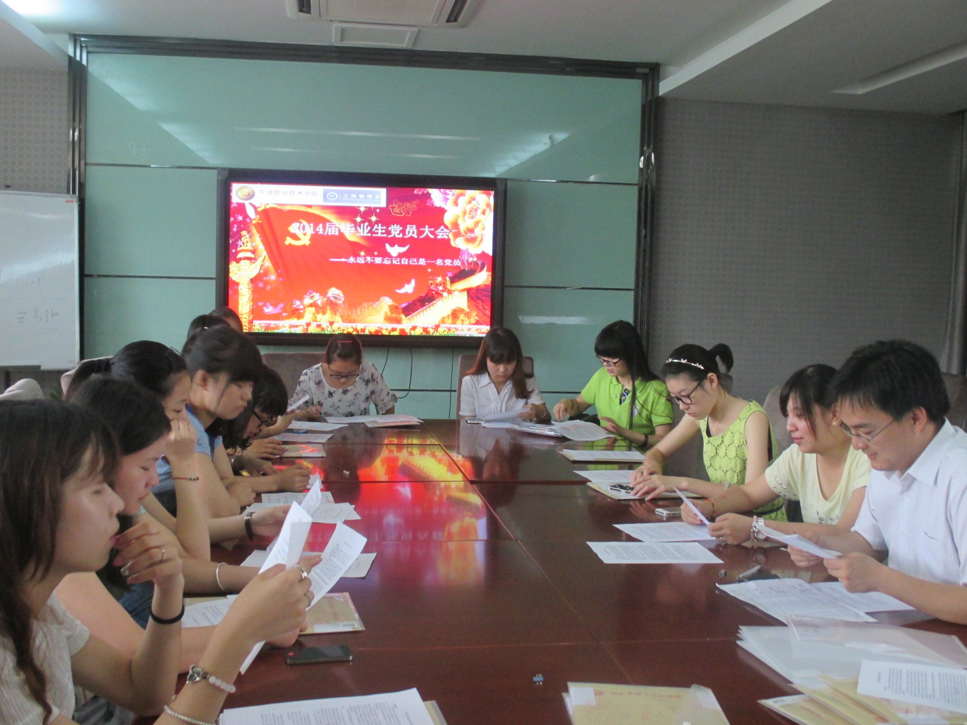 永远不要忘记自己是一名党员,谨记党的身份,遵纪党的纪律,为切实做好毕业生党员组织关系,向毕业生党员发放组织介绍信及档案袋的工作,为发挥党员的先锋带头作用。6月20日上午8点半,工商管理系在明德楼商务谈判中心召开了毕业生党员大会。大雨纷纷,但毕业生参加党员大会的步伐依然坚定,准时参加了会议,而此次会议由工商管理系学工办主任杨超老师主持。