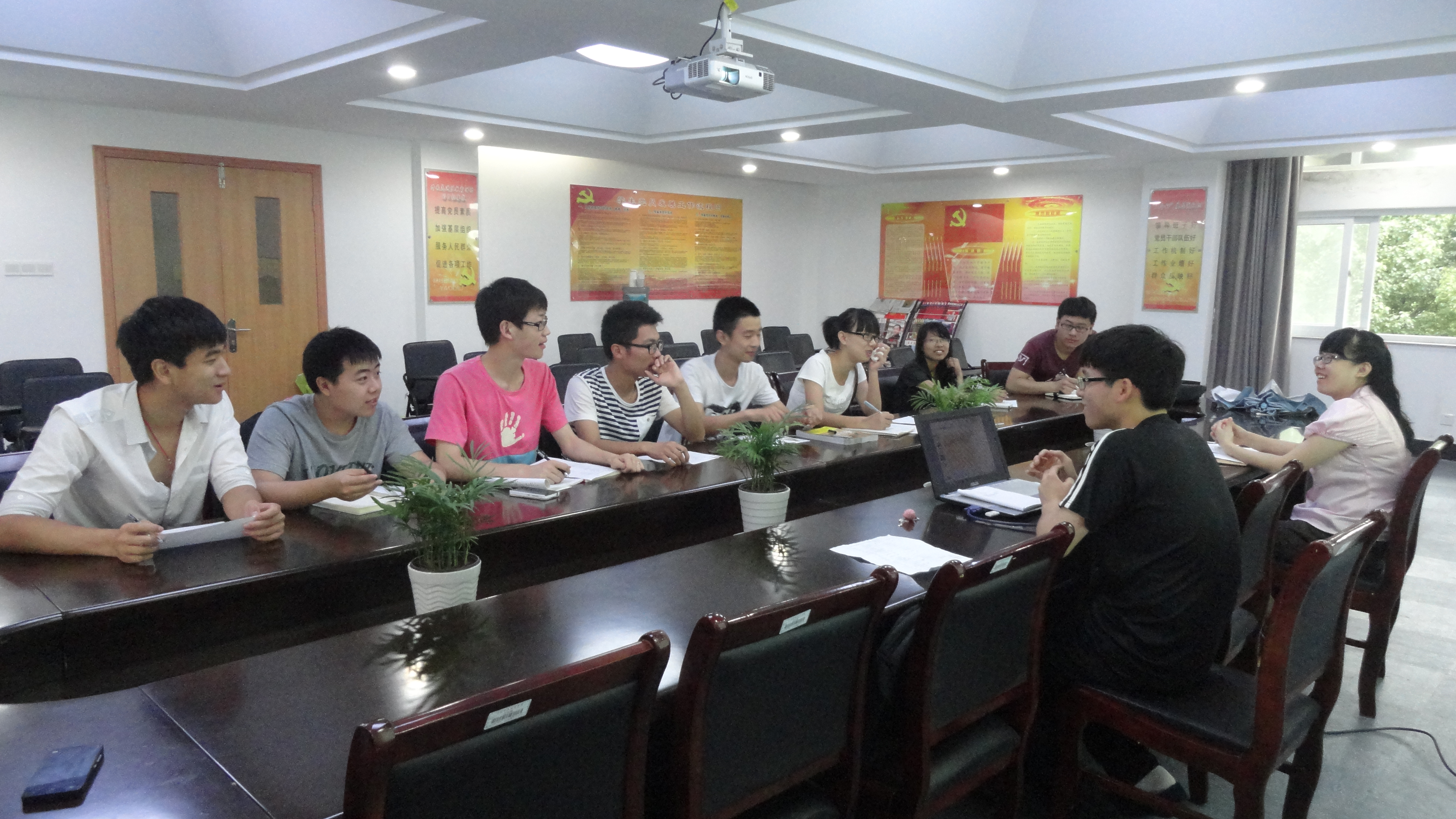 图为:暑期社会实践小队与陈宇老师、学长探讨问题