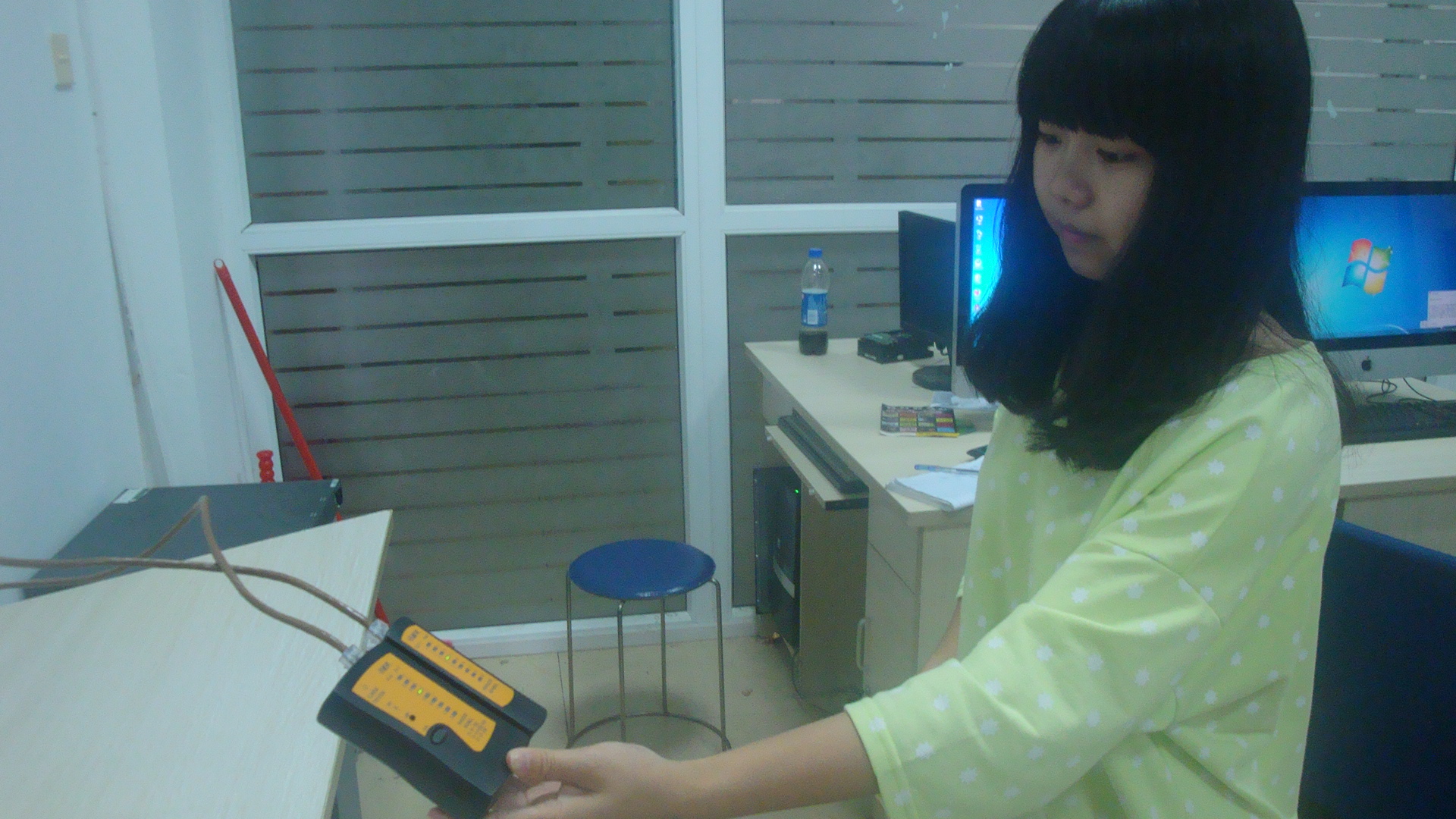“你们平常都会做些什么?”记者问周银也。周银也对记者说:“我系在许多机房中有许多废弃及损坏的网线,网络工作室的同学为我系节省资源,收集废弃的网线,并重新排线,安上新的水晶头,并用仪器测试网线通不通,就可以再次利用,防止浪费。”周银也一边介绍一边拿出做好的双绞线给记者看。