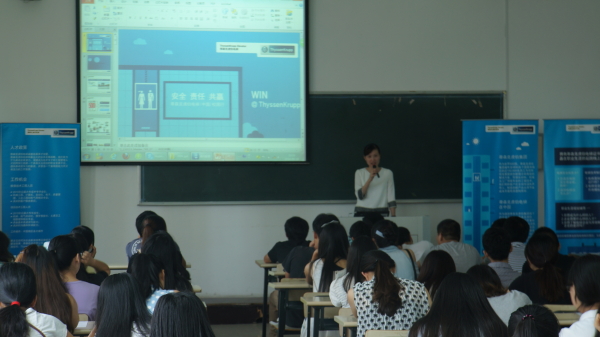 接着唐经理又讲解了职业生涯规划。她从目前各专业学生的就业形势切入此次讲座的正题。她指出,目前就业形势十分严峻,大学生在应聘前应做好充分准备,全面了解用人单位。接着,他以分析案例的方式对毕业生就业即将面临的问题进行了深刻剖析,并对毕业生就业的相关问题和流程作了详细的介绍。最后,她还介绍了蒂森克虏伯电梯公司的一些概况,并介绍了目前公司在人才培养和用人需求方面的信息,并表示蒂森克虏伯电梯公司欢迎有兴趣的同学前来应聘。唐经理深入浅出的讲解吸引了在场的每一位同学,同学们认真记录,并用心思考就业的相关问题。在最后的现场提问环节中,在场的学生踊跃提问,唐经理对同学们的问题一一进行了详细解答。