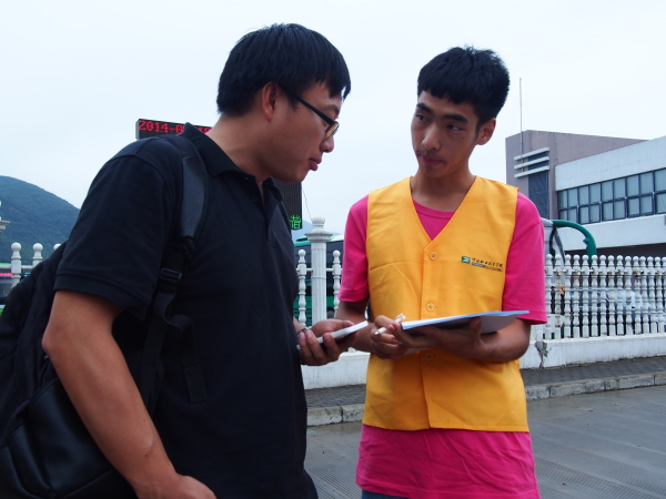 9月18日,宁波职业技术学院化工学院志愿者部负责人阮海峰带领8位志愿者来到郭巨、白峰、柴桥、小港等共10个地方,为了全面掌握各派出所在“防范、管理、打击、服务”等方面的工作实效,现以无名记得方式向群众发放安全感满意度测评表。