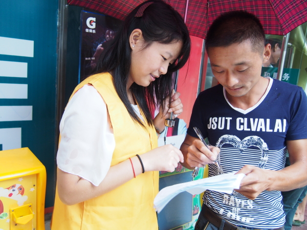 天空不作美,下起了大雨,但这并不能阻挡志愿者们前进的脚步。中午12::20,志愿者们纷纷来到集合地点。志愿者们分成三组,赶赴每个地方。经过半小时的车程,首先来到郭巨派出所管辖的区域。下了车,志愿者们就冒着雨,手里拿着测评表一个一个路人问过去。“你好,打扰一下,我们是宁波职业技术学院化工学院的志愿者,我们在做一份群众对公安机关满意度与安全感测评表,请问你觉得你生活的这个地方安全么?”志愿者王意萍问道。那些爷爷奶奶,叔叔阿姨,会很有礼貌的说道:“很安全。”“那你对郭巨派出所平时的工作情况和服务态度满意么?”“满意的。”普查表上安全感一共有5项:很安全、安全、基本安全、不太安全、不安全。大部分的居民都是选择安全的。满意度一栏里,也都是选择满意这一选项。