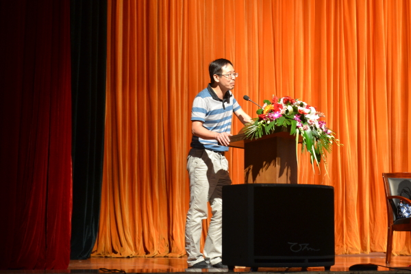 大会议程过半,会计专业主任石建平老师上台,他也同样表明了对2014级新生们到来的欢迎,并根据自身教学理念,将会计专业做了简单分析以使同学们更好理解自己的专业信息。最后,工商学院院长、党总支副书记董鸿安老师发表了最后讲话,他结合历年教学经验,对所有工商学院的新生们表示衷心的祝福,新生力量的注入给整个工商学院带来了别样生机。