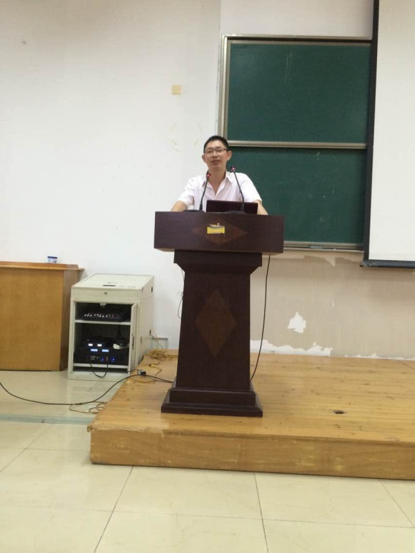 图为:主讲人金仁通正在讲话