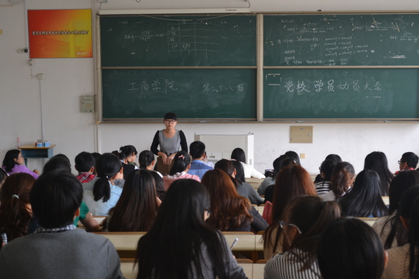 伴随新学期的开始,工商学院各班都推选出一名优秀学生参加党校学习。为帮助新一期党校学员们更好地进行党校学习,2014年10月10日中午12点45分,工商学院第二十八期党校学员动员大会在明德楼103教室举办。本次动员大会的主讲人是工商学院团委学生会组织部部长助理方芝艳,参加本次动员大会的除了新一期的党校学员外还有组织部部分成员。