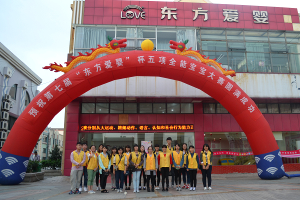 2014年10月12日早上六点二十分,由宁波职业技术学院工商学院志愿者服务大队干事南冰洁带领的20余位志愿者们在南门集合准备出发去东方爱婴,走进“东方爱婴杯”宝宝五项全能大赛。
