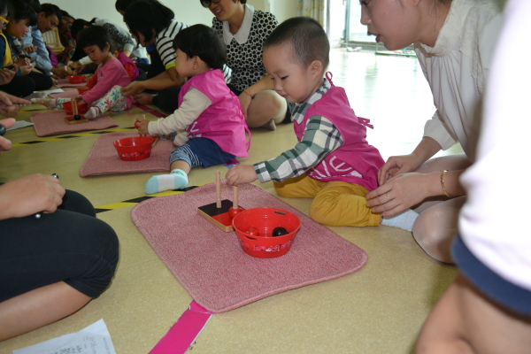 此次五项全能大赛的参赛人员为7~24个月的婴儿,各个志愿者做起了宝宝们的裁判,他们笑着迎接每个宝宝的到来。比赛中,不仅考验了宝宝们的动手能力与协调能力,也考验了每一位志愿者的耐心与公平公正的精神。在游戏环节,志愿者们与宝宝们手拉手,跟着音乐跳舞,整个教室充满了宝宝们、家长们、志愿者们和老师们的笑声。每个人脸上都洋溢着灿烂的笑容。每一组比赛结束,志愿者们帮宝宝脱下比赛的赛服。孩子们跟随着父母,依依不舍地离开教室。