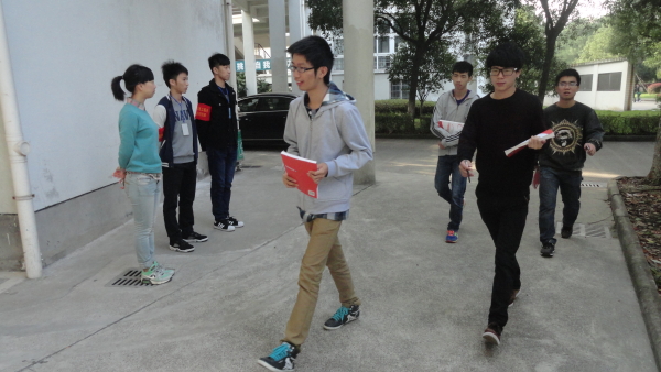 图为:我分院学生会干事检查同学们的仪容仪表